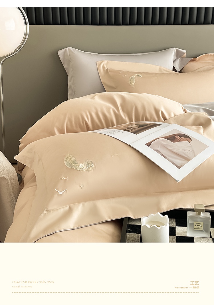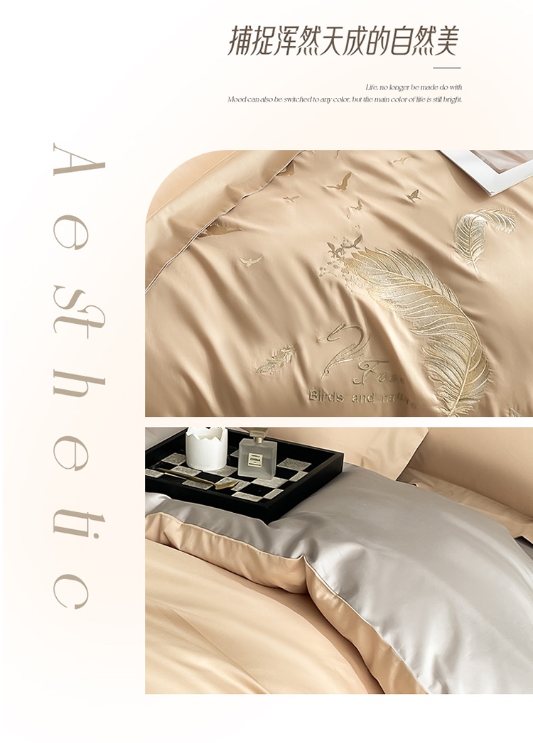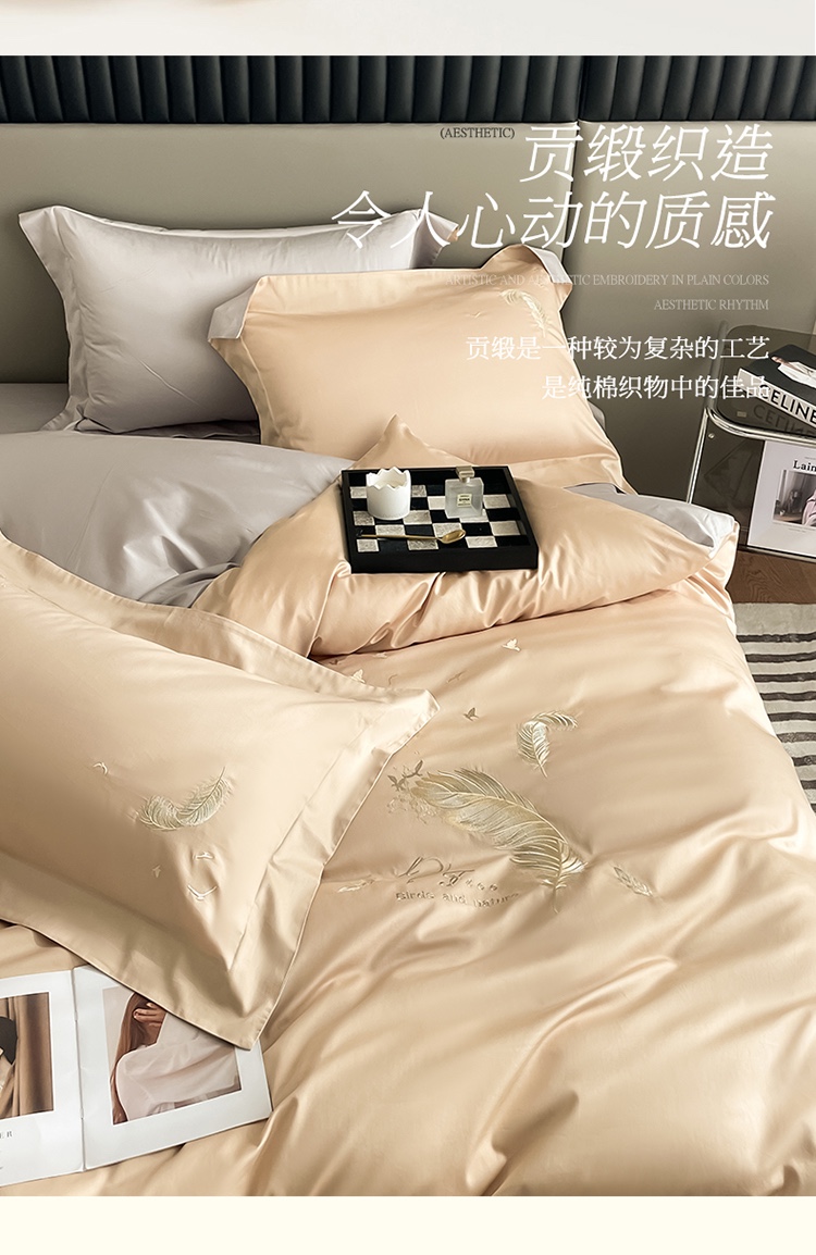 商品名称:蓝米卡夫 2024全棉高级感长绒棉刺绣兰羽系列-单被套 兰羽-香槟山灰