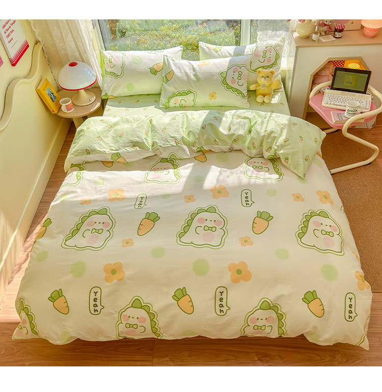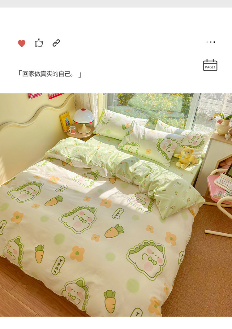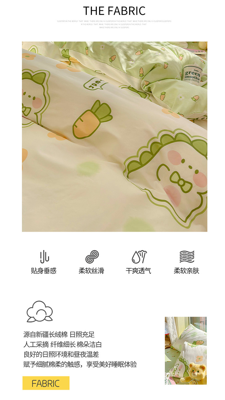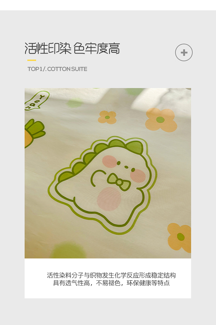 商品名称:瑞莱 2023春夏新款全棉印花四件套-卡通系列 (第二批)萌萌小恐龙