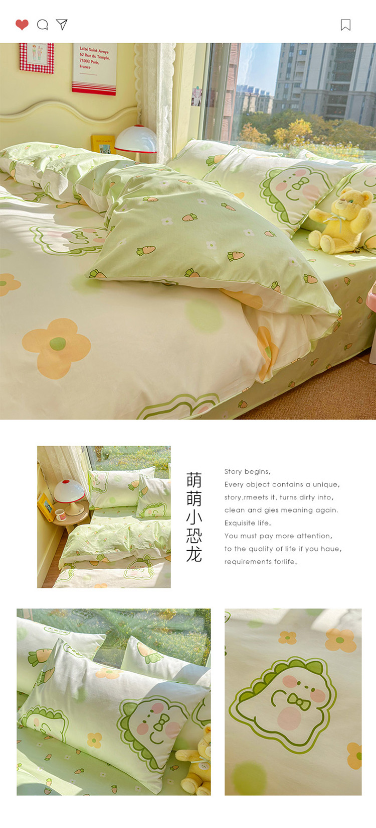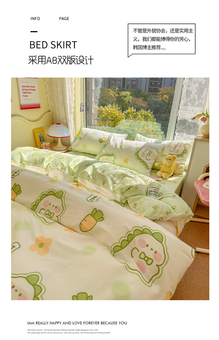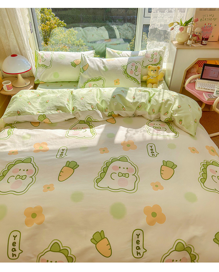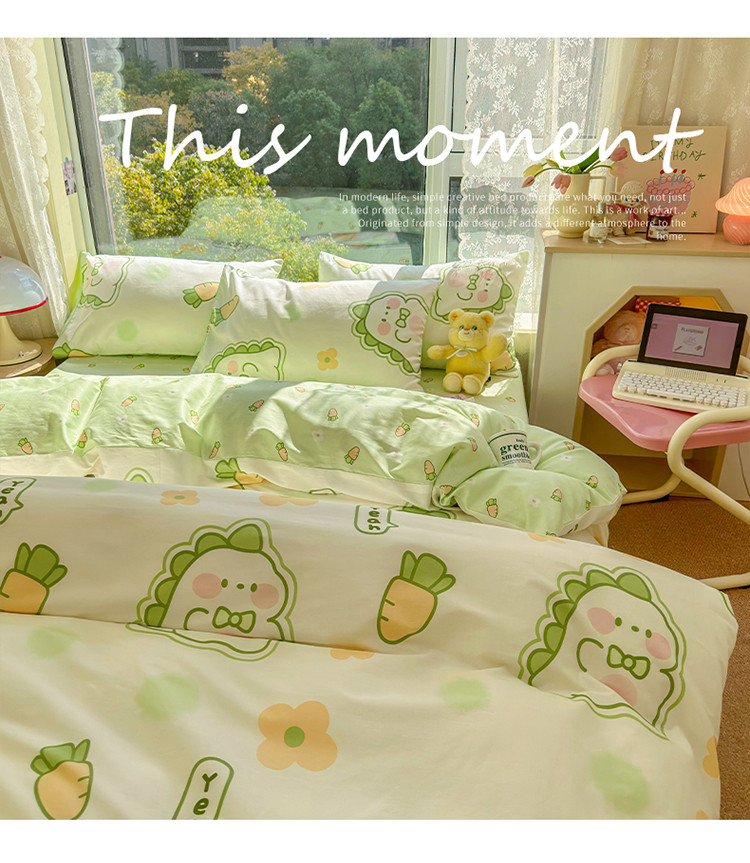 商品名称:瑞莱 2023春夏新款全棉印花四件套-卡通系列 (第二批)萌萌小恐龙