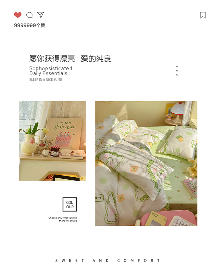 瑞莱 2023春夏新款全棉印花四件套-卡通系列 (第二批)萌萌小恐龙