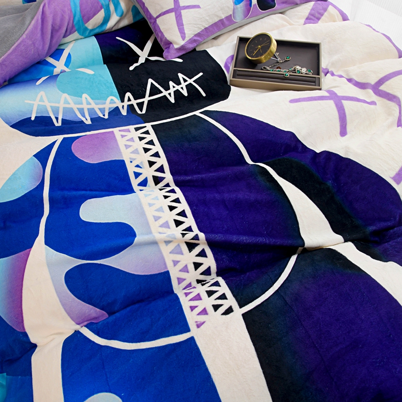 (总)爵仕 2023新款秋冬牛奶绒数码印花四件套保暖,宝蓝,简约蓝,魅力红,暖粉,烟灰