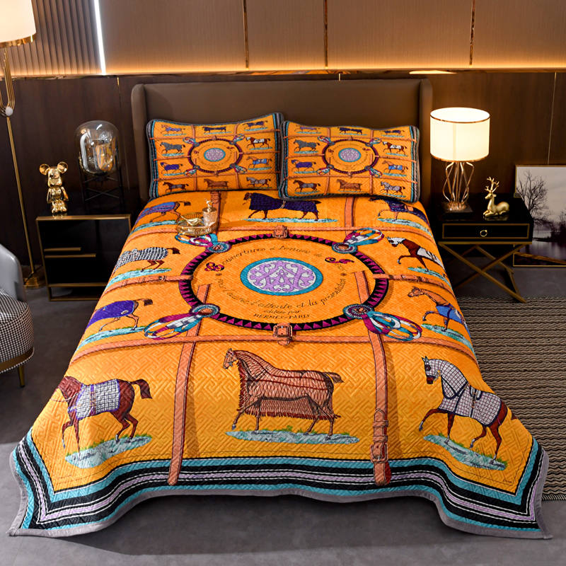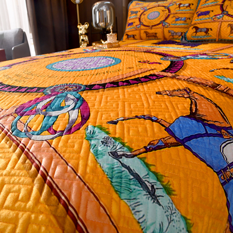 爵仕家纺 2025新款高端加厚数码印花宝宝绒床盖三件套四季可用 十骏马