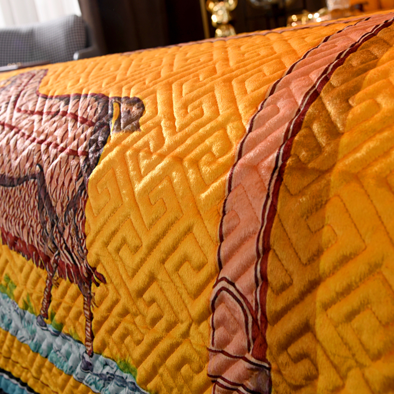 商品名称:爵仕家纺 2025新款高端加厚数码印花宝宝绒床盖三件套四季可用 十骏马