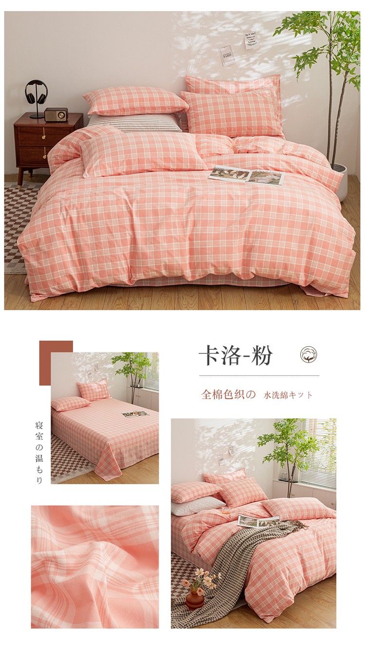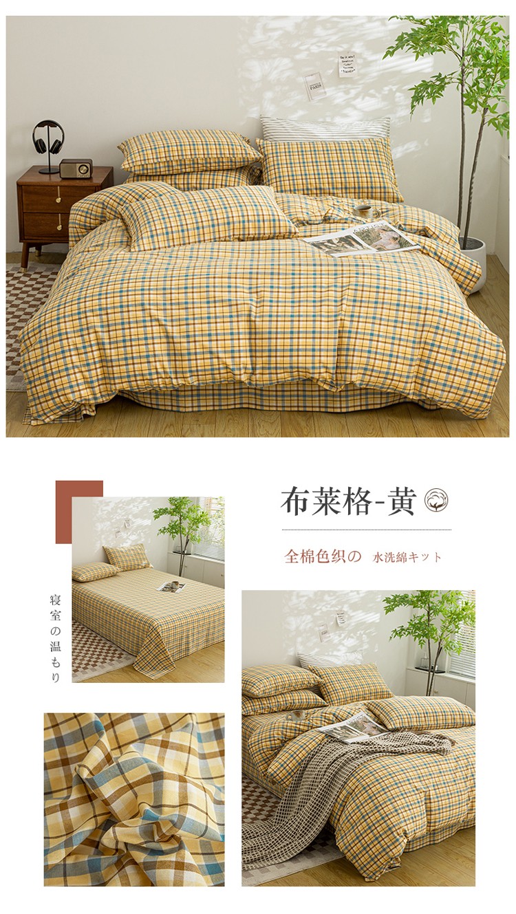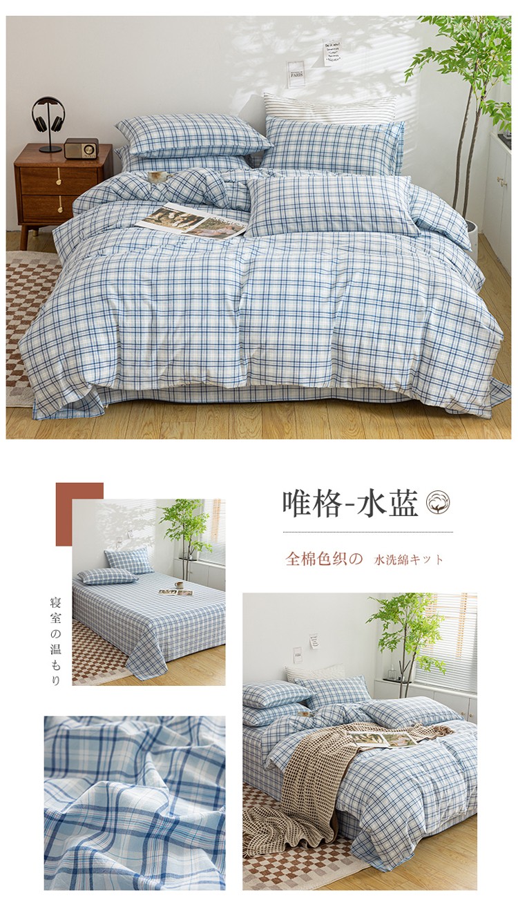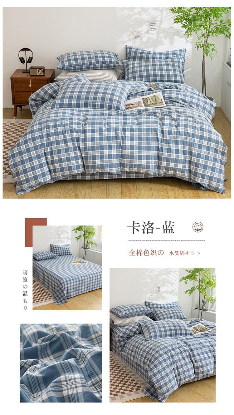 (总)柠萌家居 2023年新款无印风格A类全棉色织水洗棉四件套