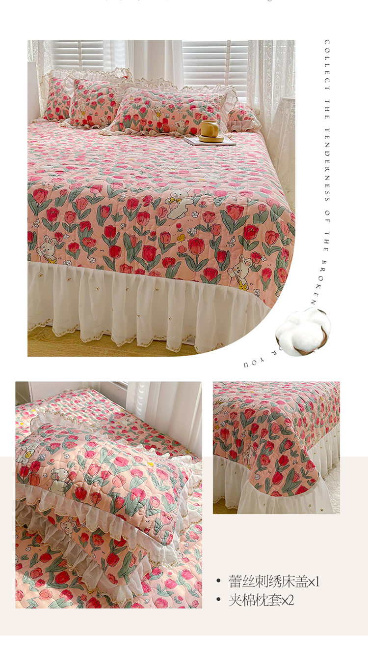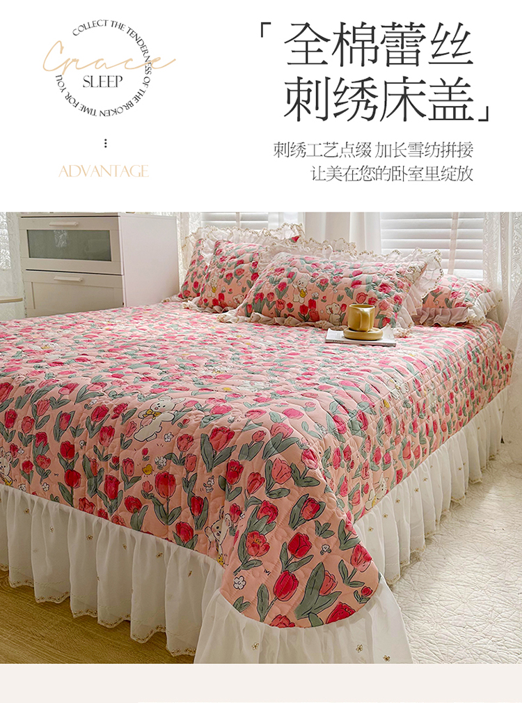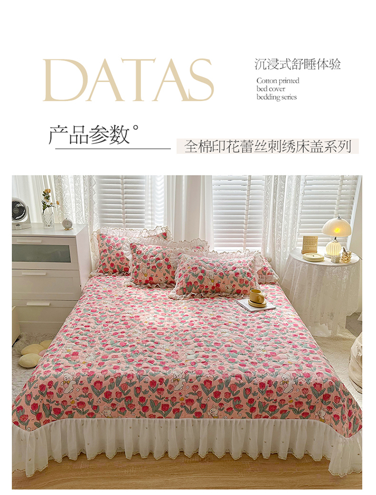 商品名称:宜凡 2023新款全棉蕾丝刺绣床盖三件套 玫瑰香氛