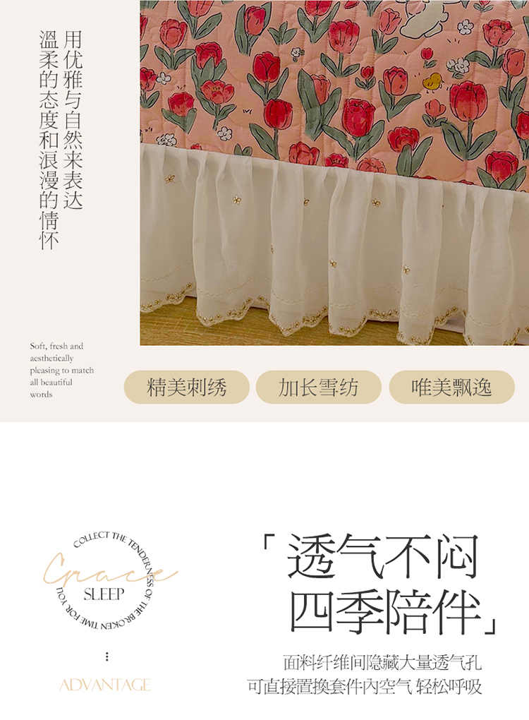 (总)宜凡家纺 2025新款全棉数码印花床裙三件套系列一,静若幽兰,浮云织梦,梦幻花园,陌上花开