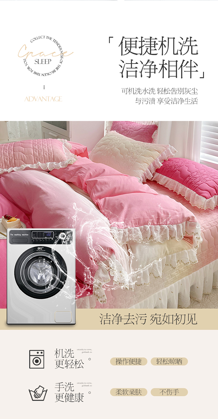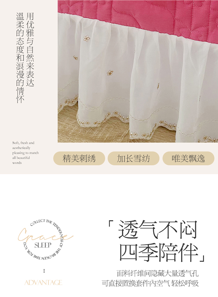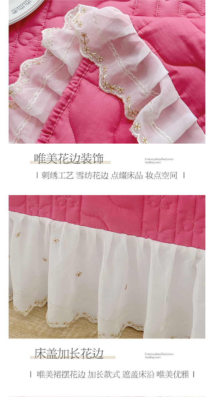 当前位置: 91家纺网 > 商品网购 > 床上用品 > 床盖 > 宜凡 2023新款全棉蕾丝刺绣床盖四件套(单层被套) 玫粉