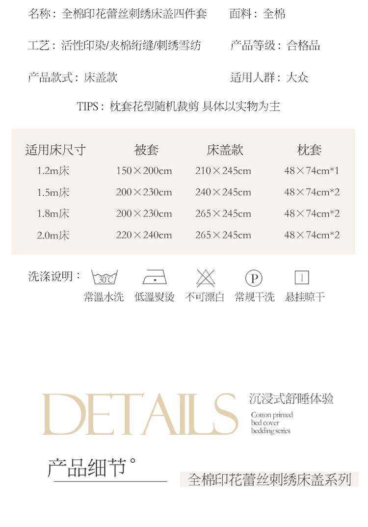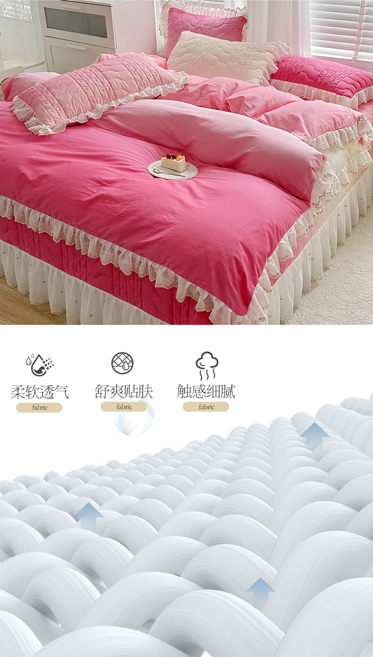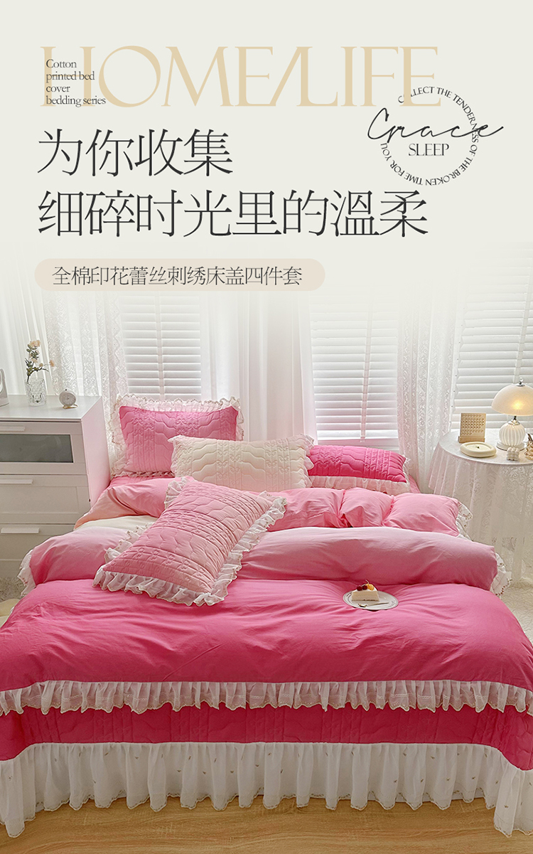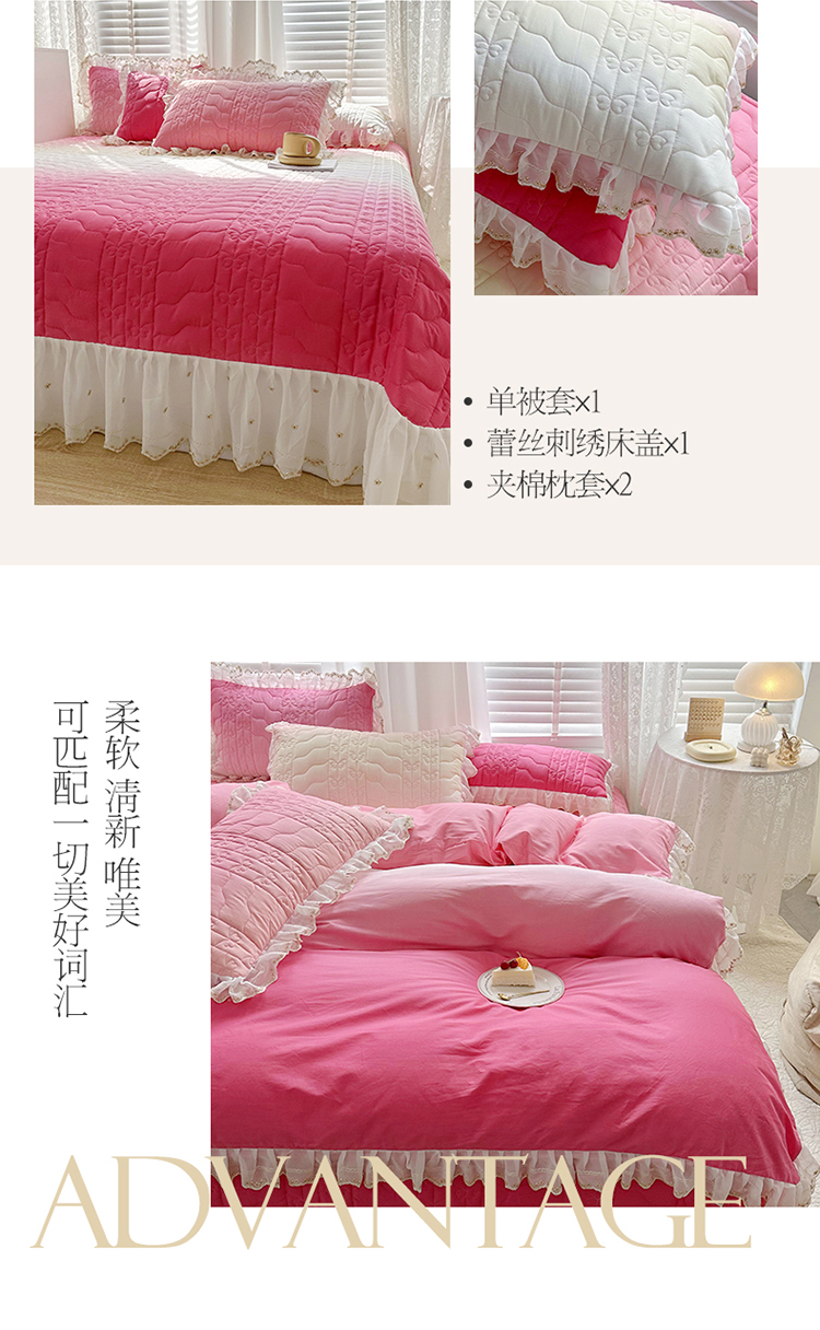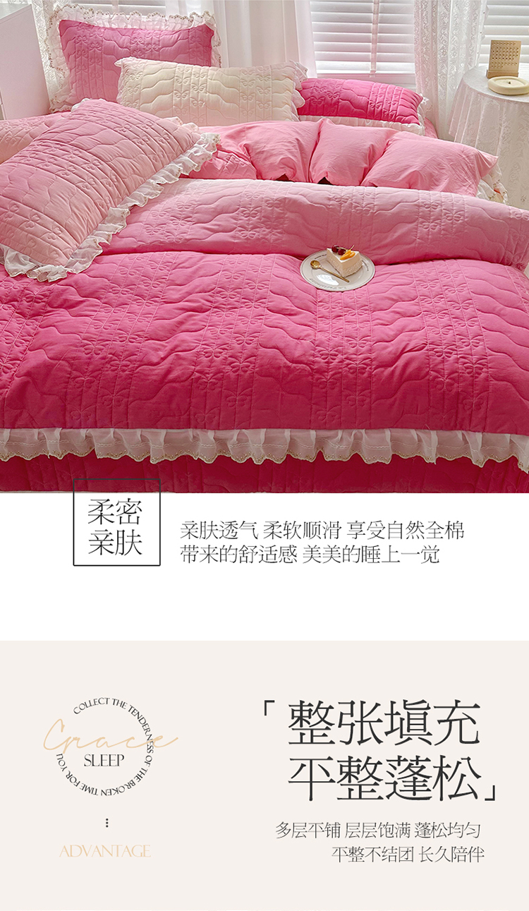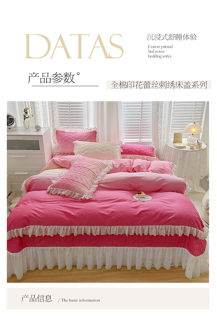 • 91家纺网 家纺一手货源 找家纺 宜凡 2023新款全棉蕾丝刺绣床盖四件套(单层被套) 玫粉
