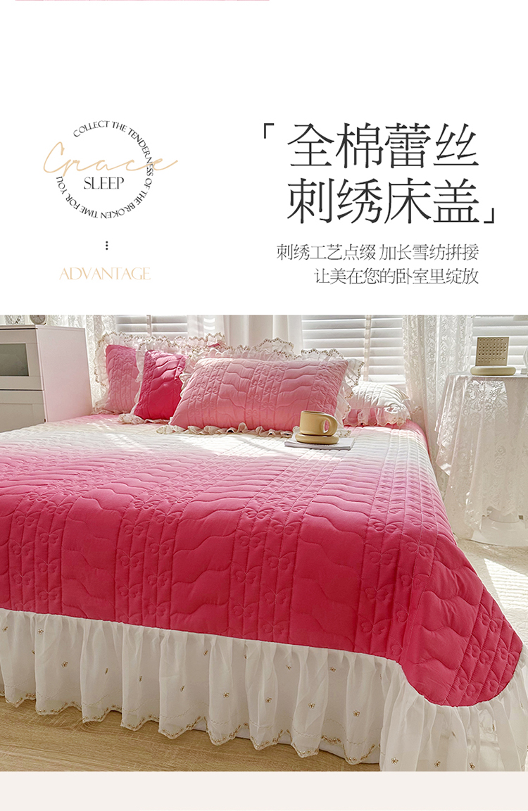 宜凡 2023新款全棉蕾丝刺绣床盖四件套(单层被套) 玫粉