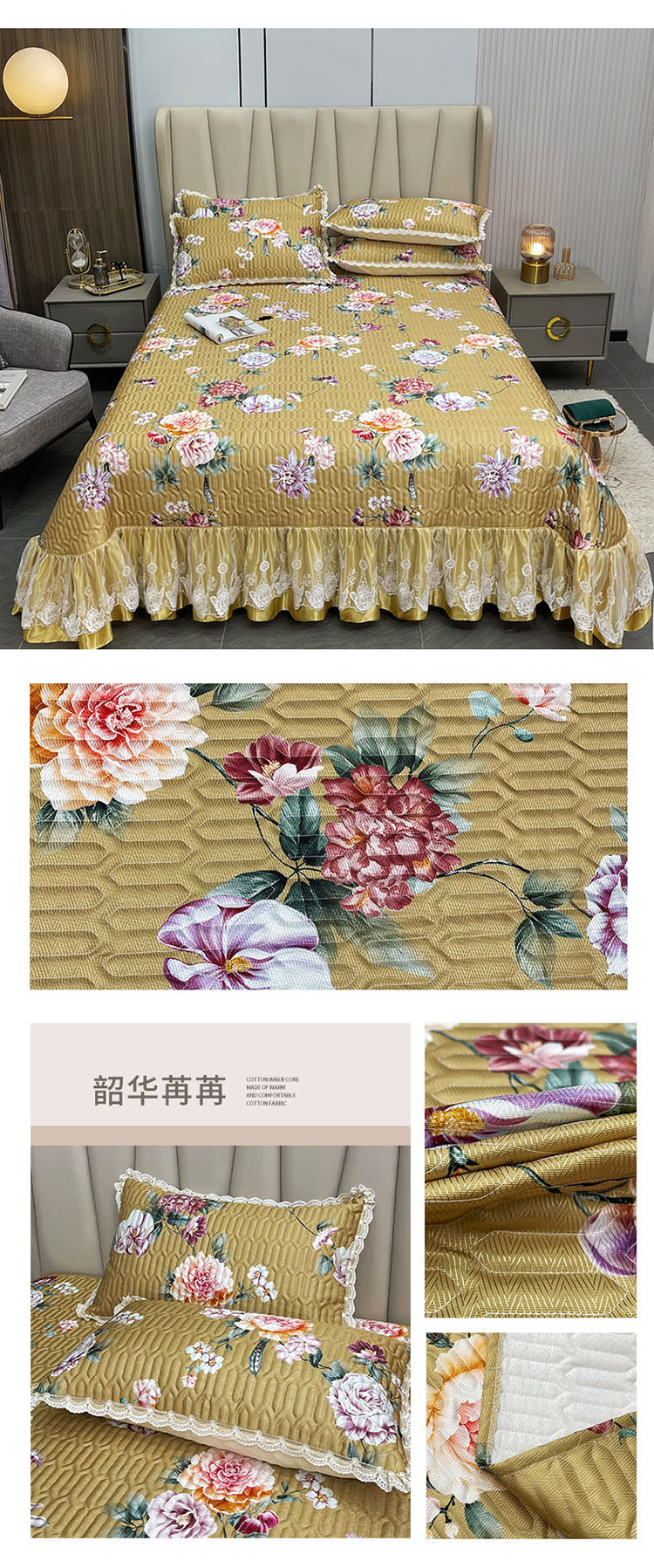 商品名称:恋尚 2023新款冰丝夹棉床盖款软凉席印花三件套 韶华苒苒