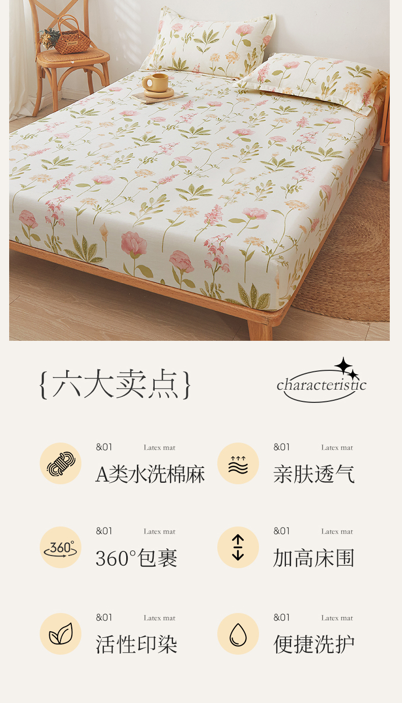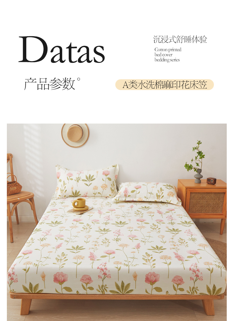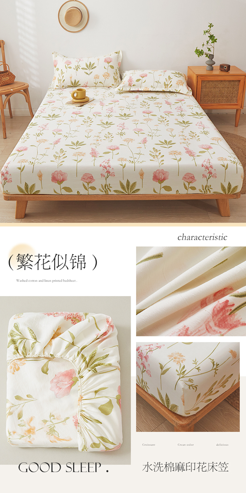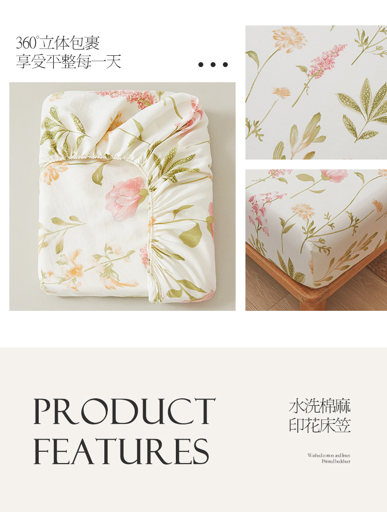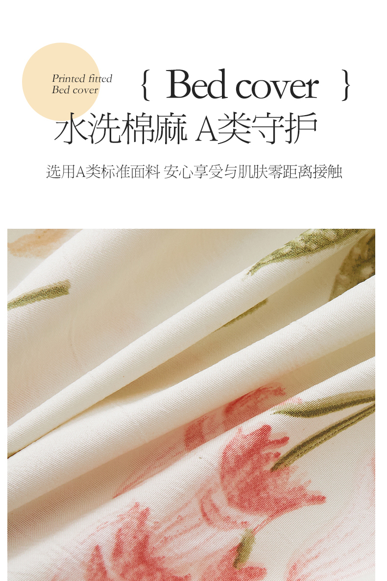 • 91家纺网 家纺一手货源 找家纺 新款水洗棉麻防尘抗菌单层床笠全包床罩 繁花似锦