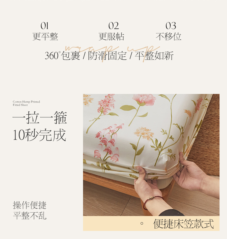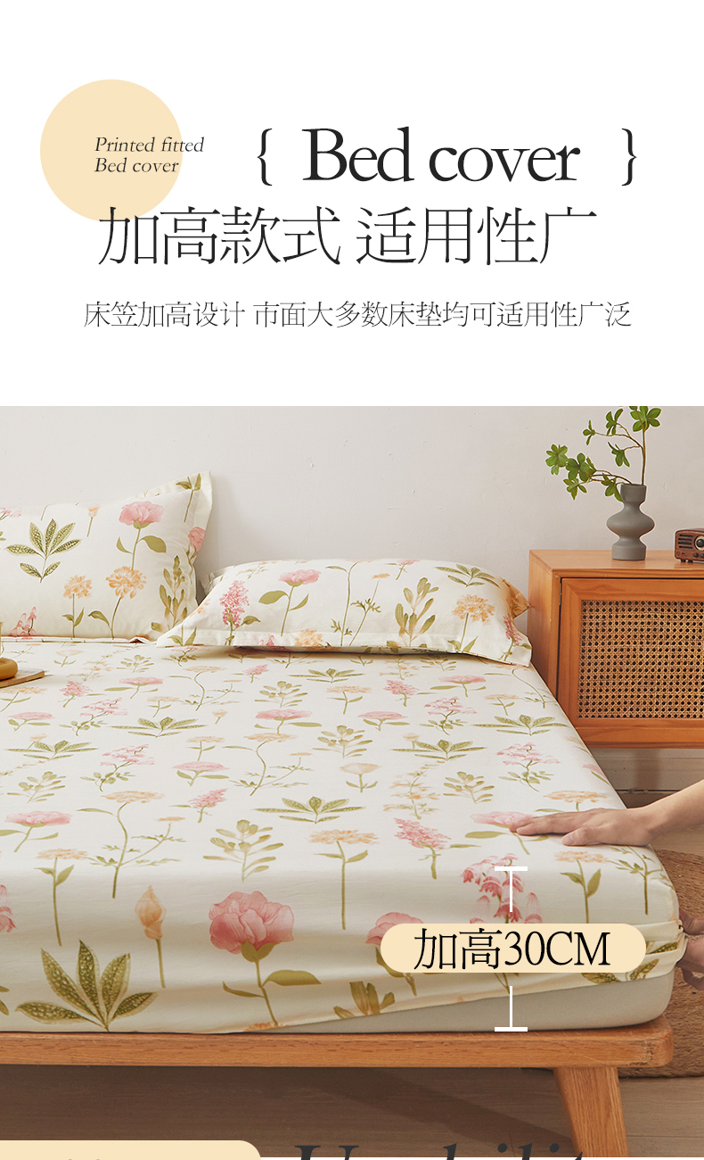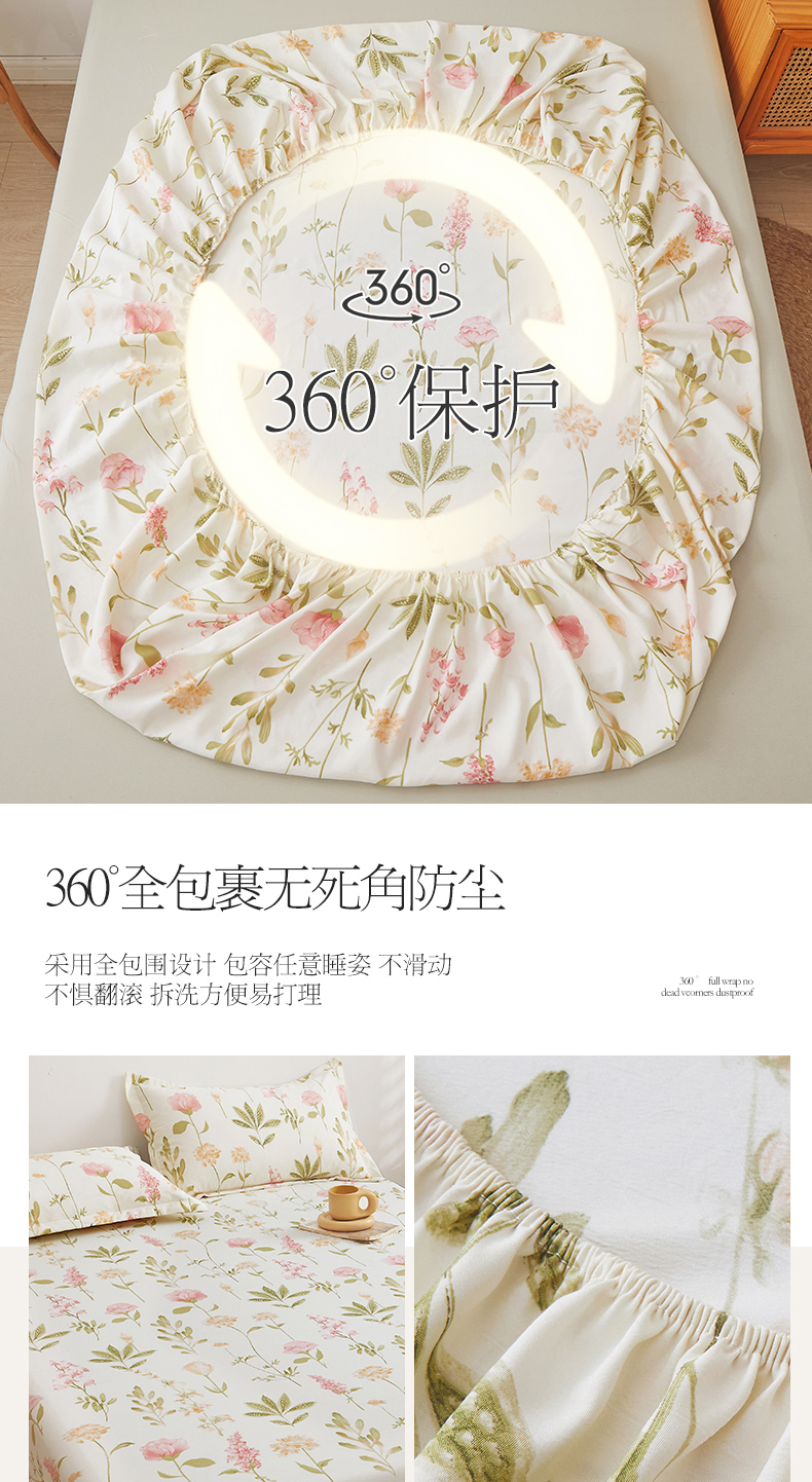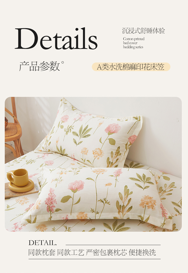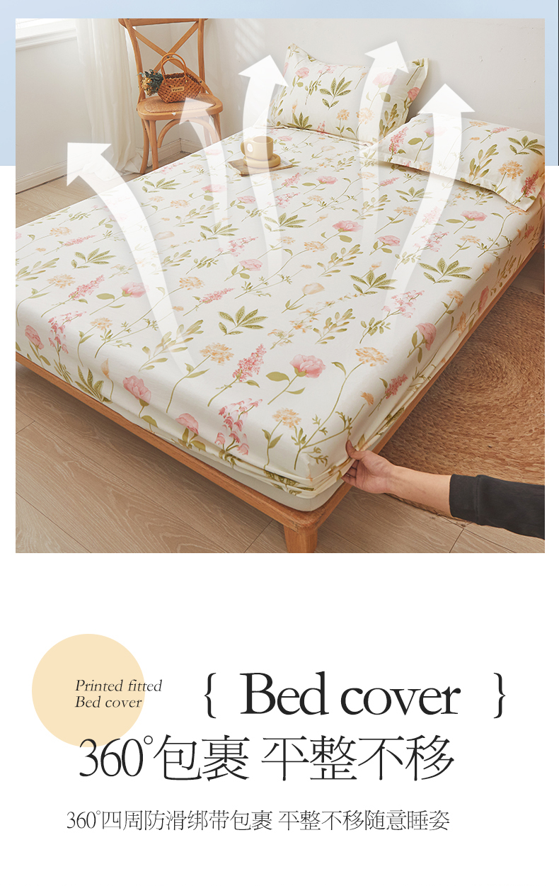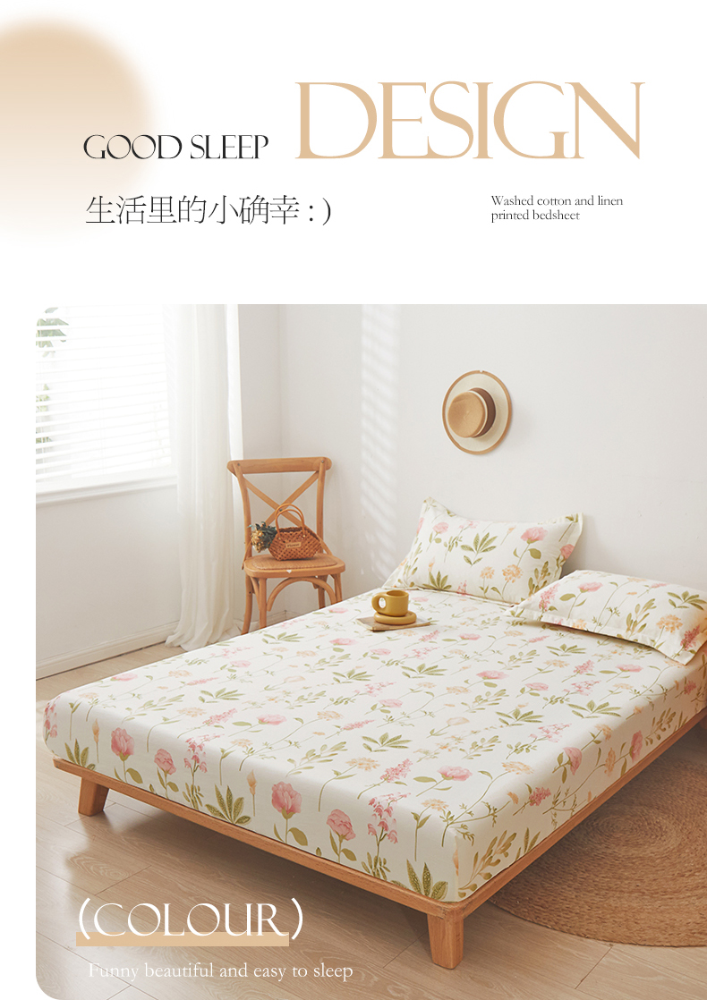• 91家纺网 家纺一手货源 找家纺 新款水洗棉麻防尘抗菌单层床笠全包床罩 繁花似锦