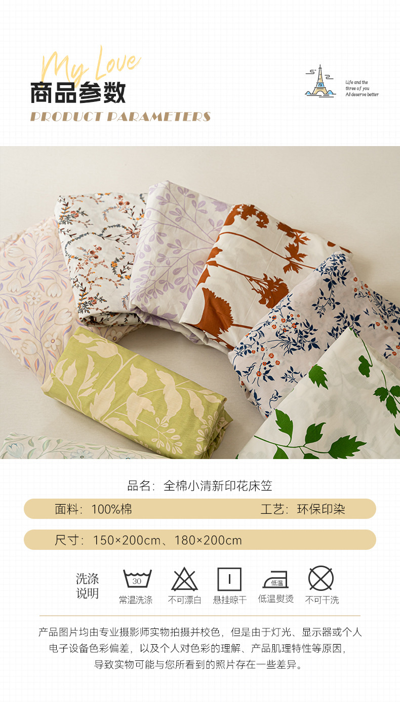 商品名称:2023时光里 春夏全棉印花系列 床笠 知夏
