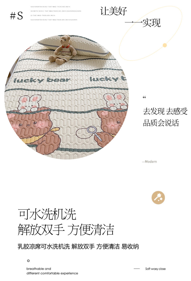 商品名称:沐慕 2023新款小清新床笠款乳胶凉席 幸运熊熊