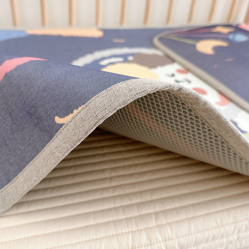 (总)橘滋 2025夏日新款高端A类原创设计婴儿童趣卡通数码印花冰丝席凉席-床席床笠,大眼熊仔,叠叠乐园,蝴蝶结兔兔,欢乐曲奇,木马小熊,太空冒险,熊猫胖达