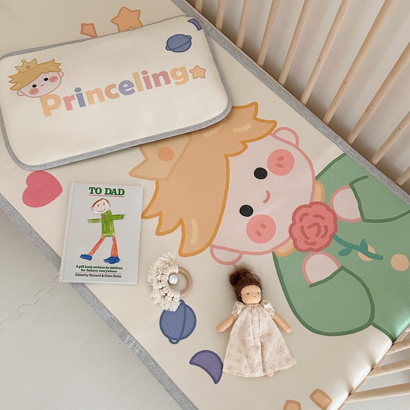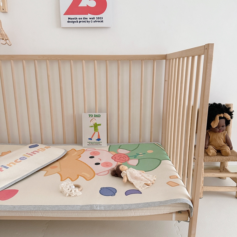 (总)橘滋 2025夏日新款高端A类原创设计婴儿童趣卡通数码印花冰丝席凉席-床席床笠,大眼熊仔,叠叠乐园,蝴蝶结兔兔,欢乐曲奇,木马小熊,太空冒险,熊猫胖达