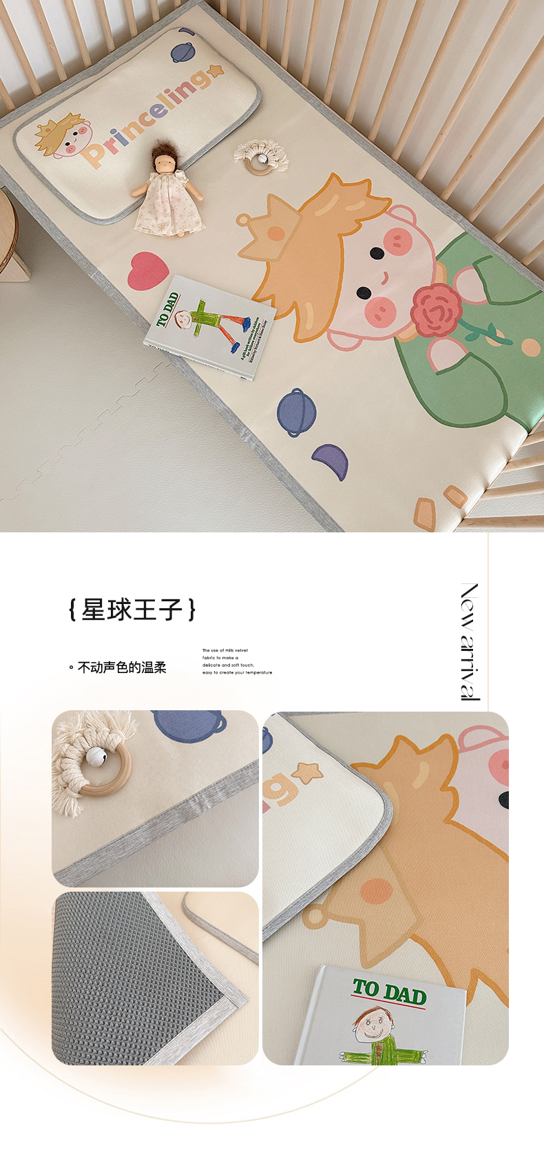 商品名称:橘滋 2023新款高端A类可水洗婴幼儿冰丝席 星球王子