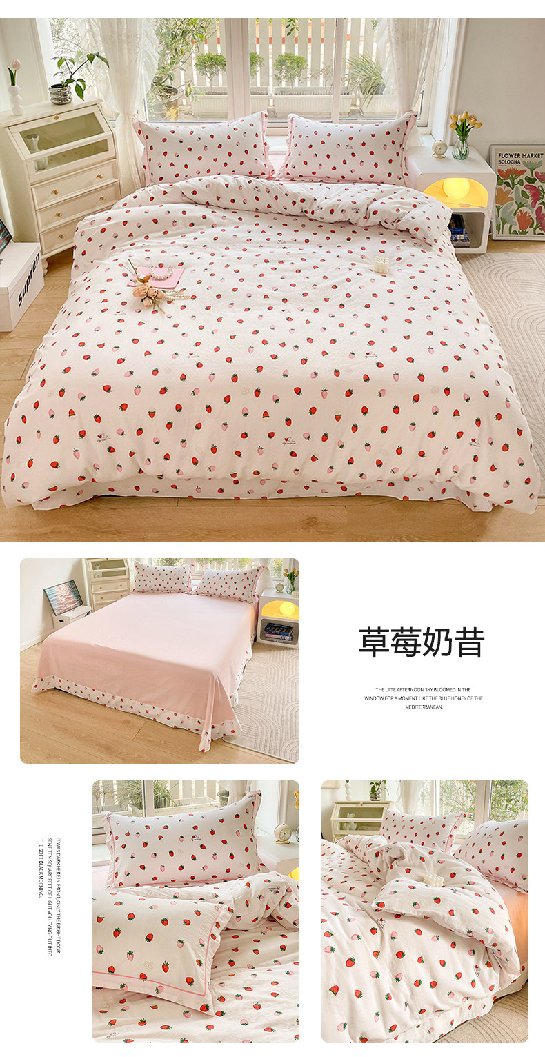 乐童 2024新款直播爆款A类全棉双层纱工艺款四件套 草莓奶昔
