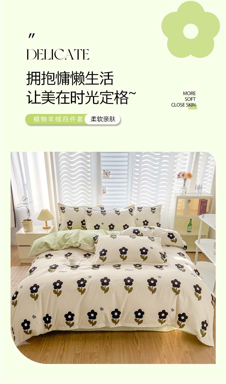 商品名称:棠颂 2023新款高克重加厚植物羊绒斜纹磨毛四件套 半夏