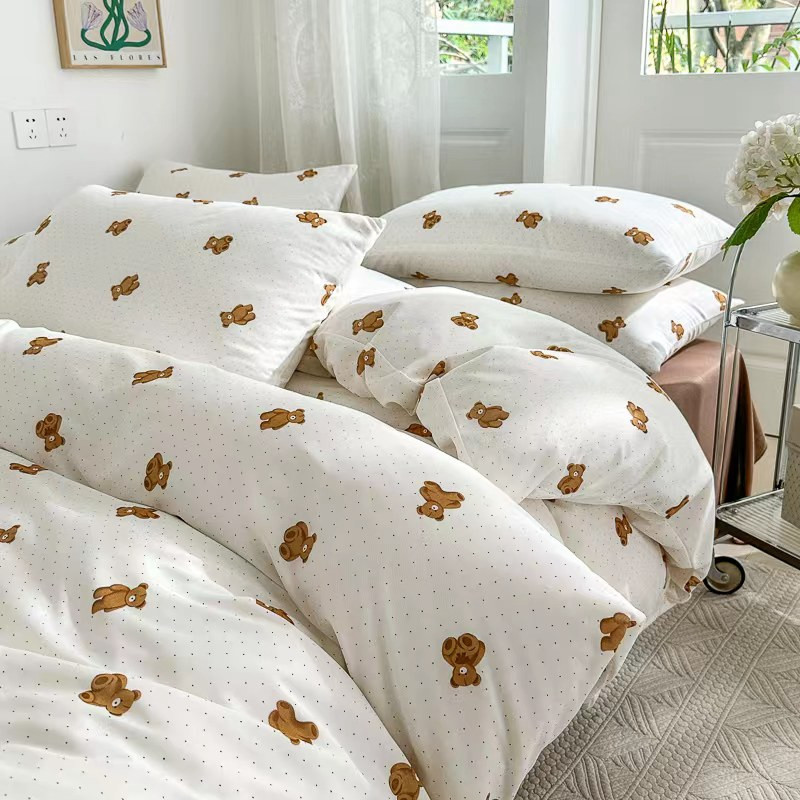 商品名称:玖玖爱 2023新款双层纱有氧纱印花四件套 点点熊