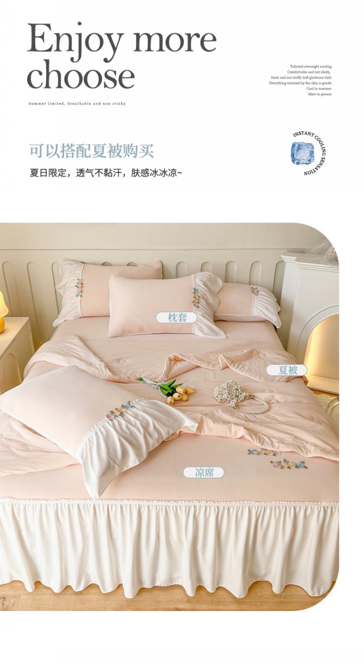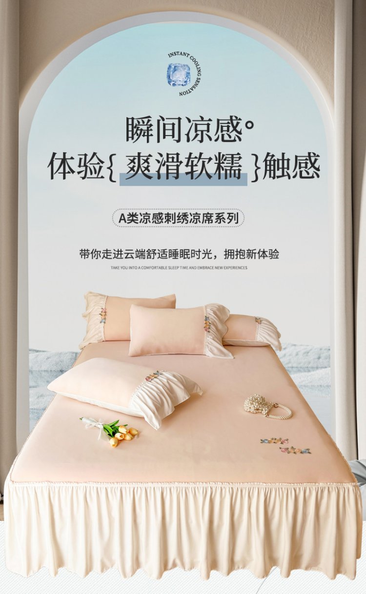 (总)乐朵家居 2025新款洛丽塔系列A类凉感席三件套,洛丽塔-豆沙,洛丽塔-蓝,洛丽塔-绿,洛丽塔-奶白,洛丽塔-玉