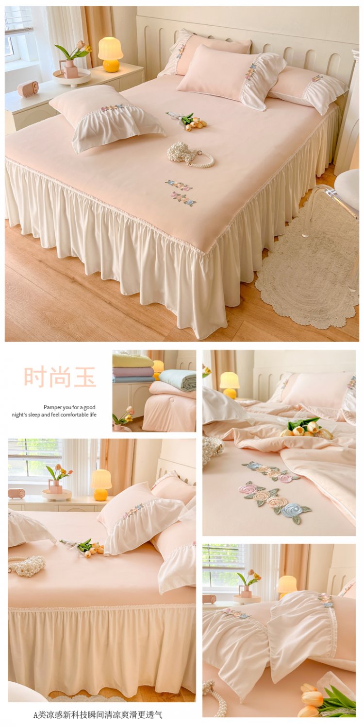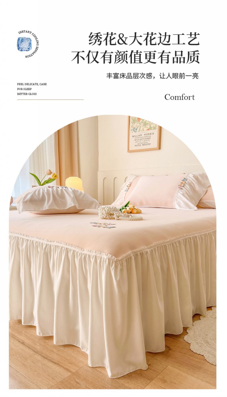 (总)乐朵家居 2025春夏 L-3花颂 蕾丝床裙,奶白,玉,绿,蓝,豆沙