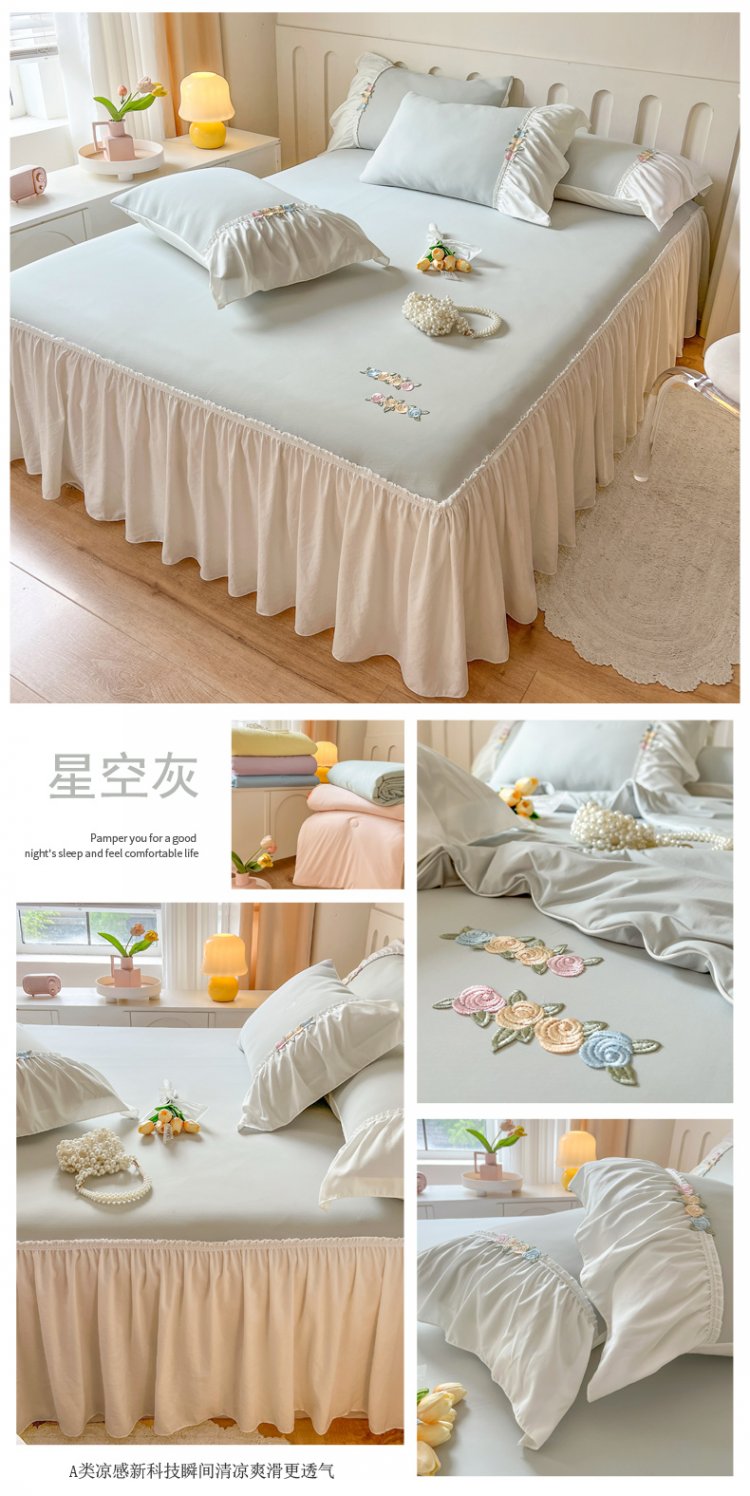 (总)乐朵家居 2025新款 25-1 芯语 蕾丝床裙,豆沙,灰,卡其,绿,米,紫