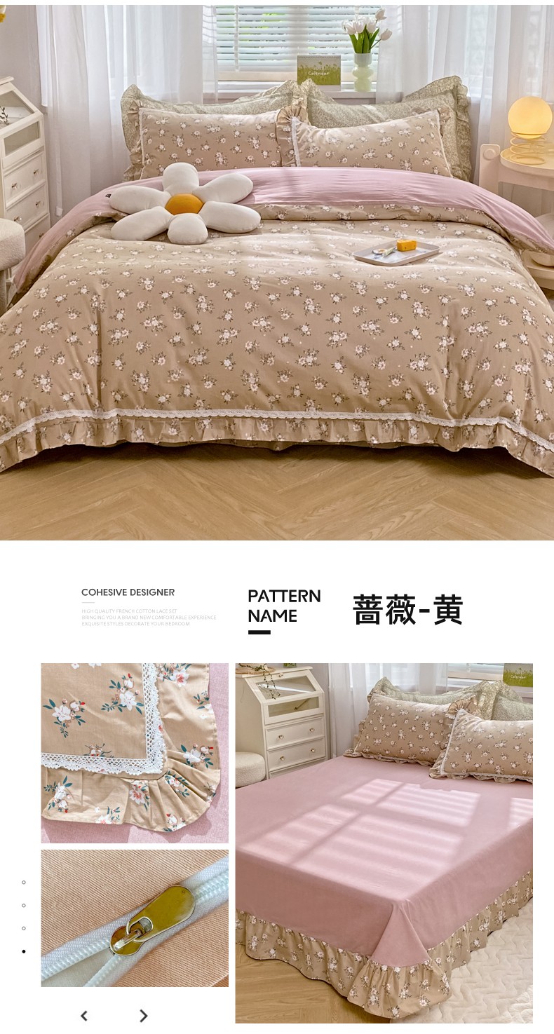商品名称:艾唯希 2024新款法式花边全棉四件套 蔷薇-黄