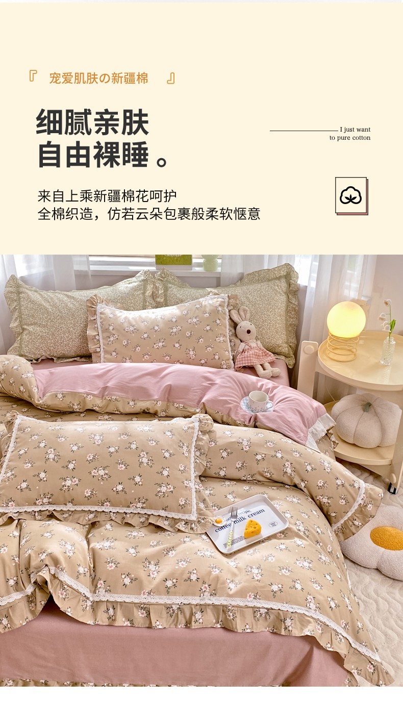 (总)艾唯希2025新款全棉小香风工艺四件套纯棉小花边碎花被套韩式公主风,初朵,春漾,漫丁蔷薇,觅秋,密玲花语,慕归十里,小青藤-米,小樱-咖,雅集,雅蔓花语,樱花,悠然雅居-粉