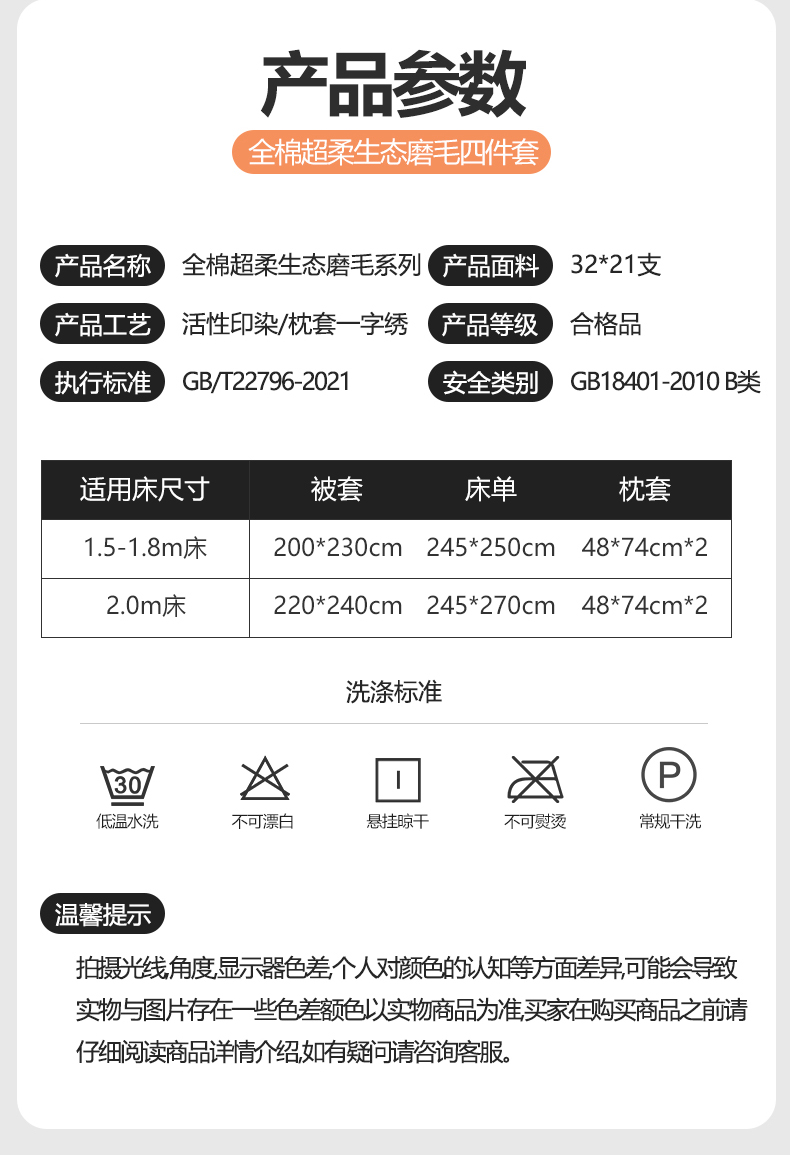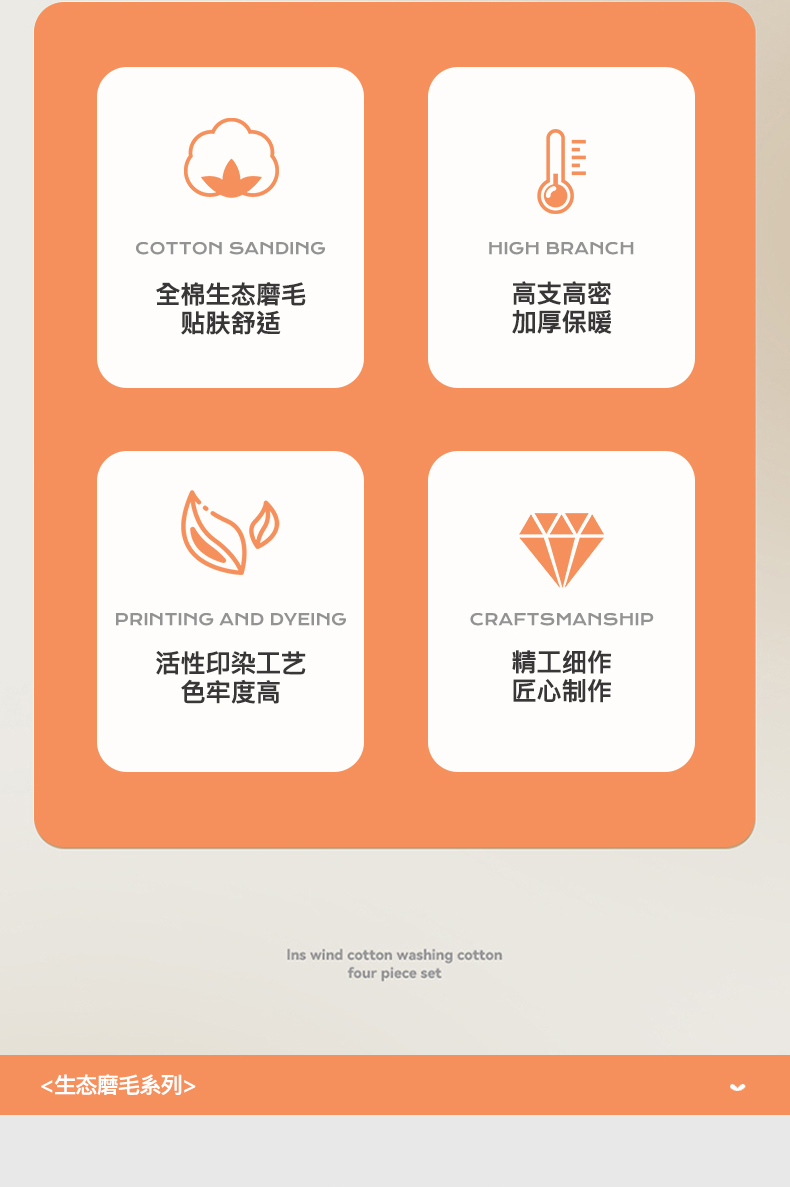 商品名称:(总2)2025秋冬新款全棉超柔生态磨毛四件套(32*21支)