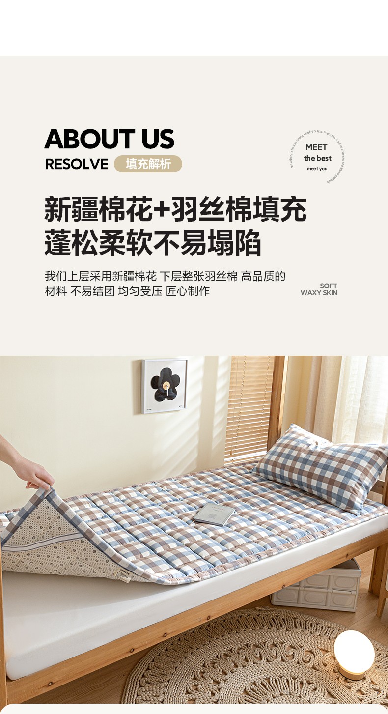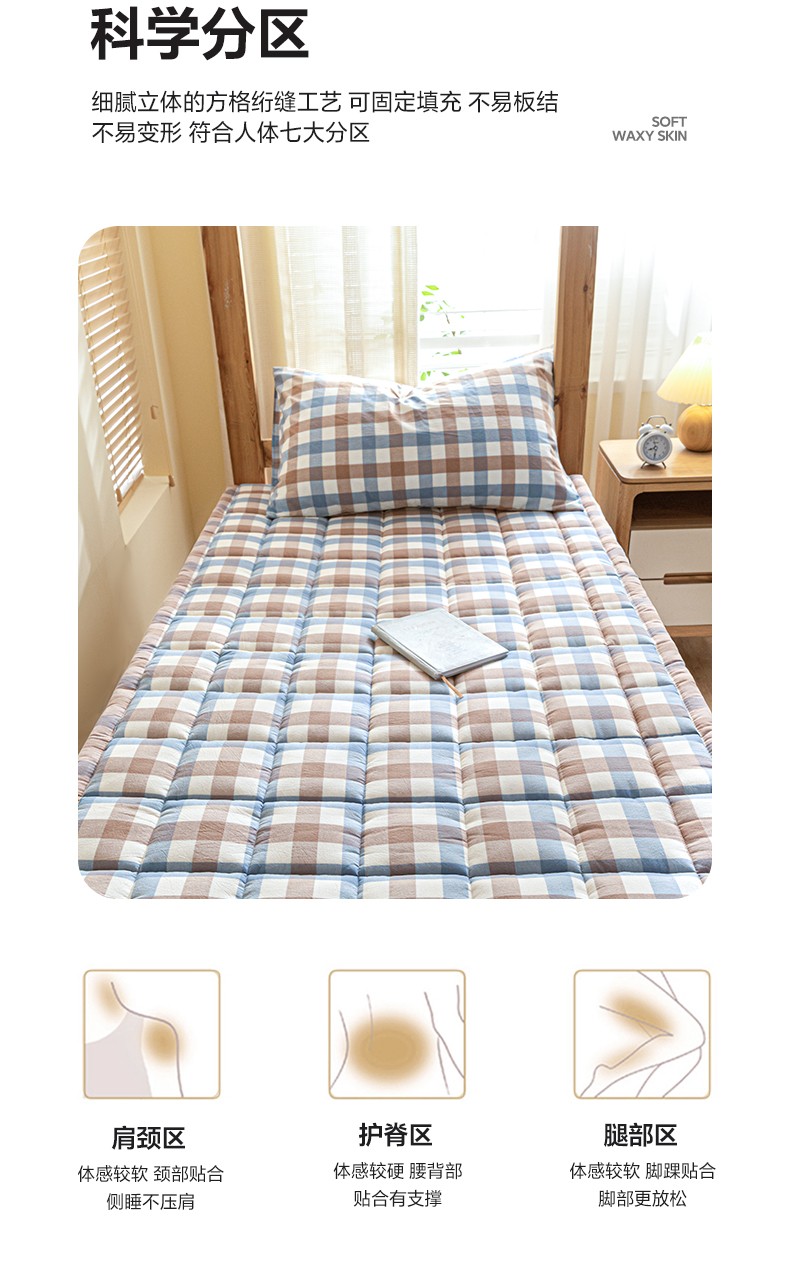 当前位置: 91家纺网 > 商品网购 > 床垫/床褥 > 普通床垫 > 东宇2023新款A类全棉水洗棉夹棉学生床垫 七彩格蓝