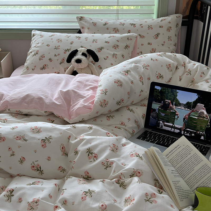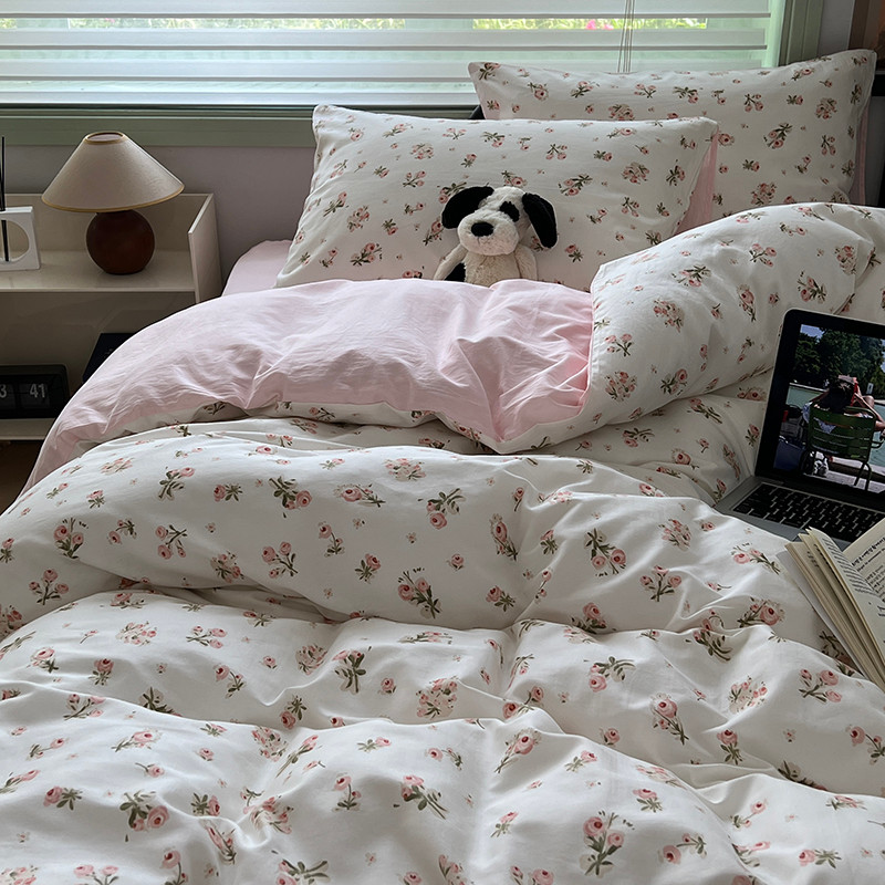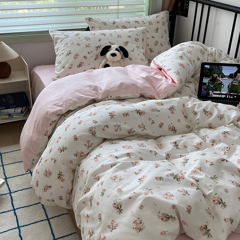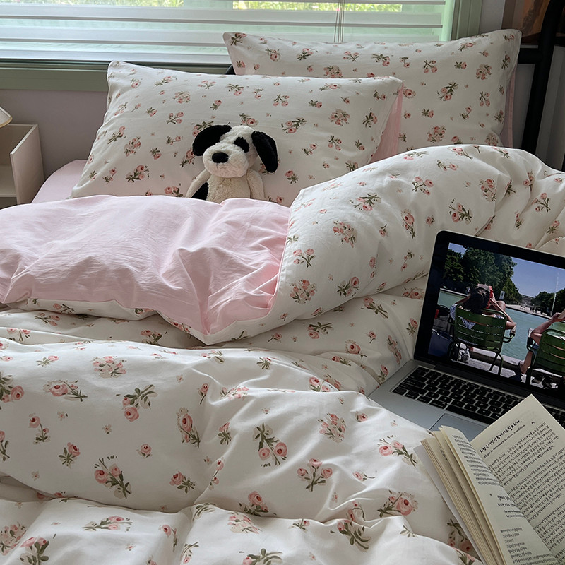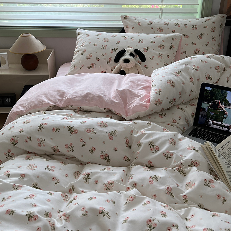 商品名称:昔可 2023新款全棉卡通小清新四件套 粉黛落樱