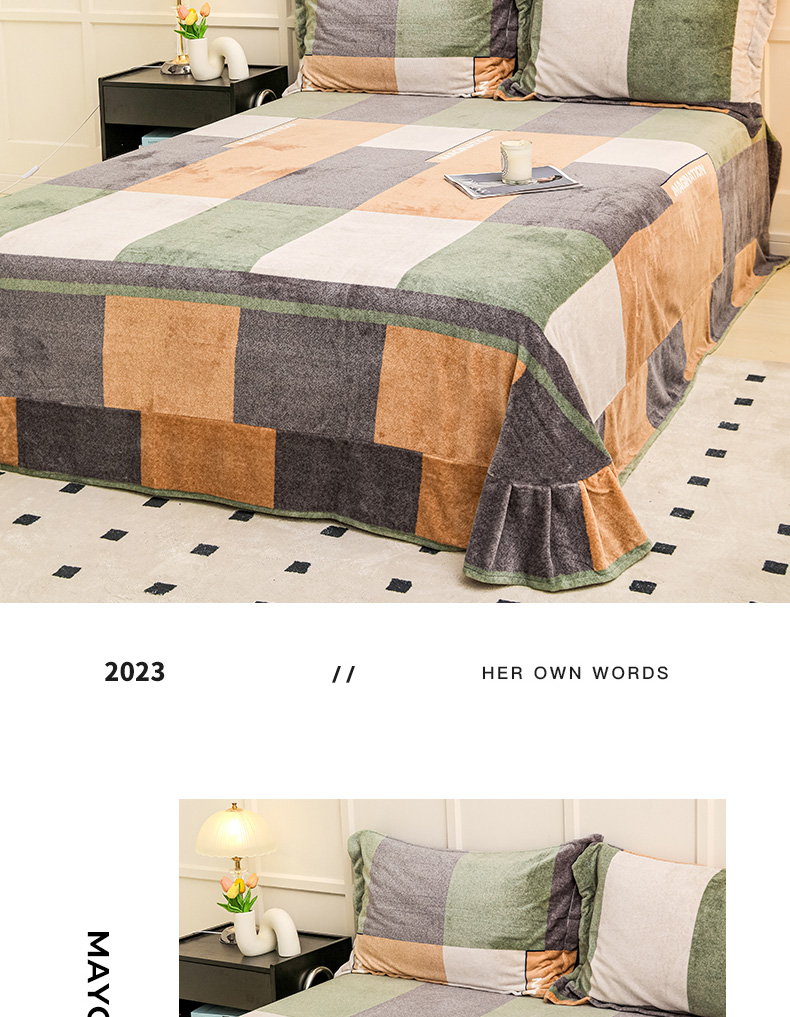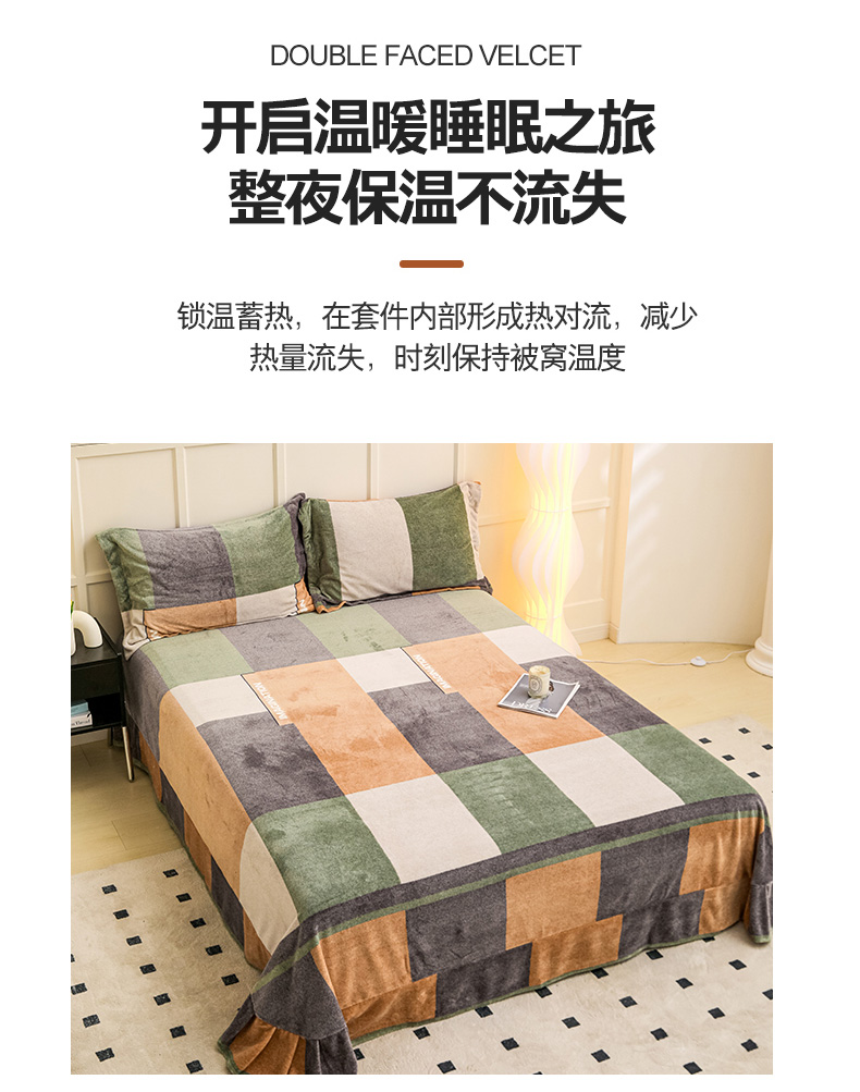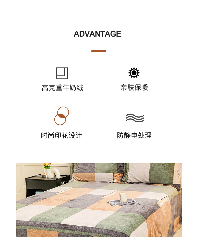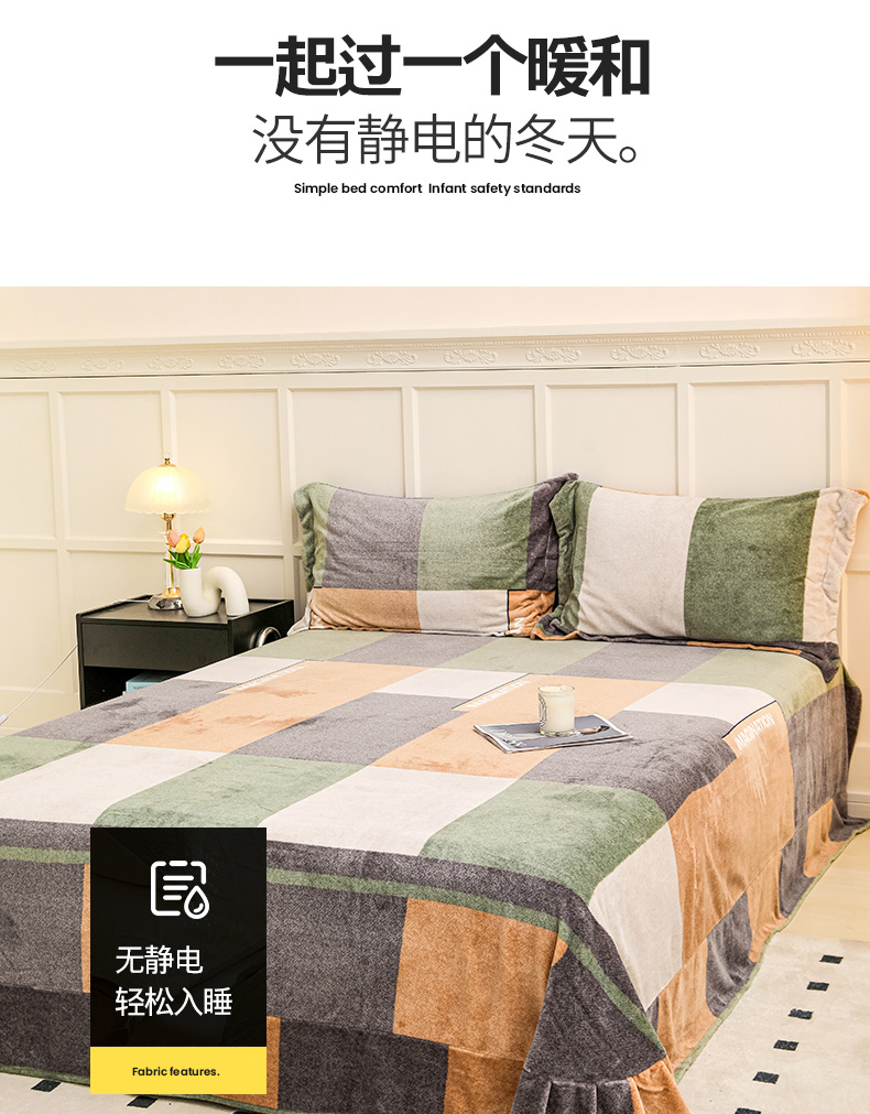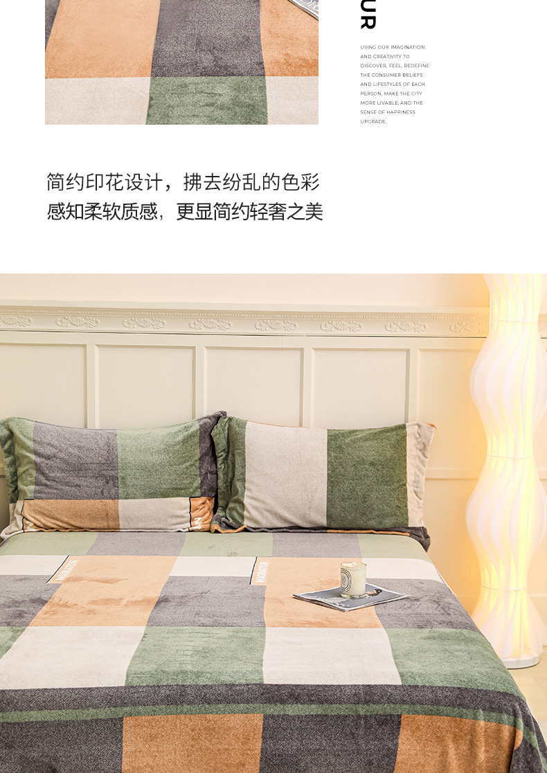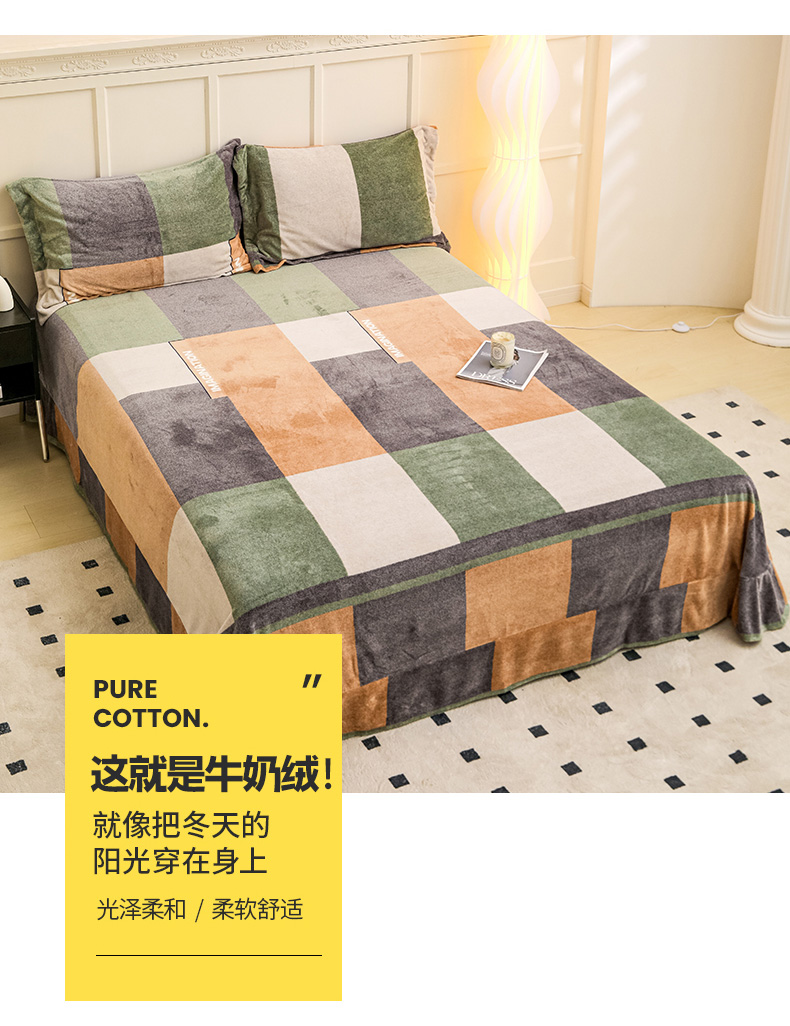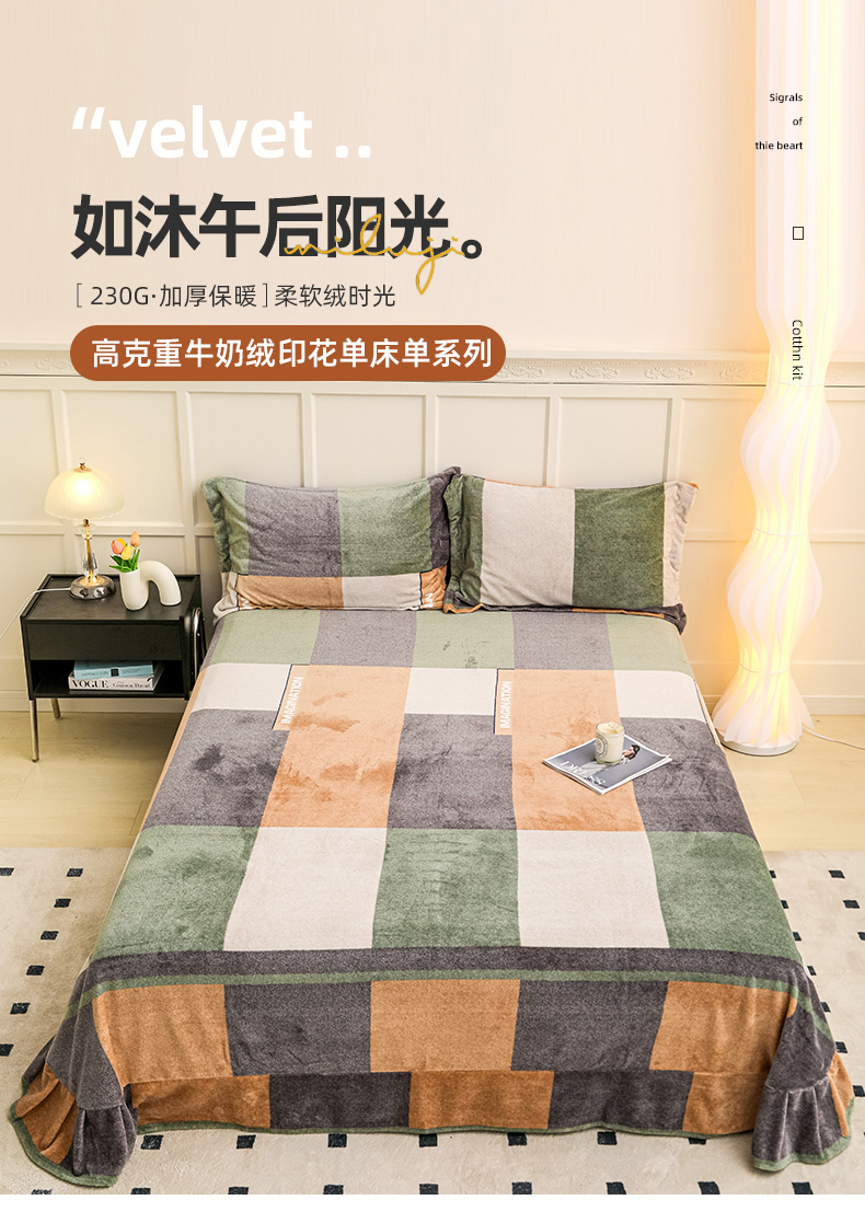 商品名称:新款230克印花牛奶绒床单定制定做尺寸 格调