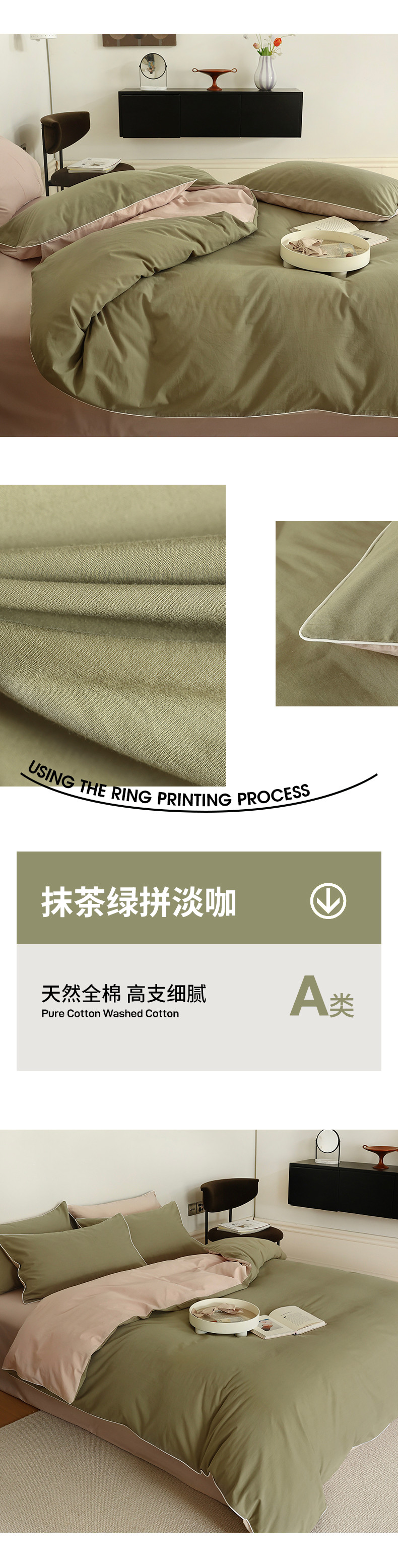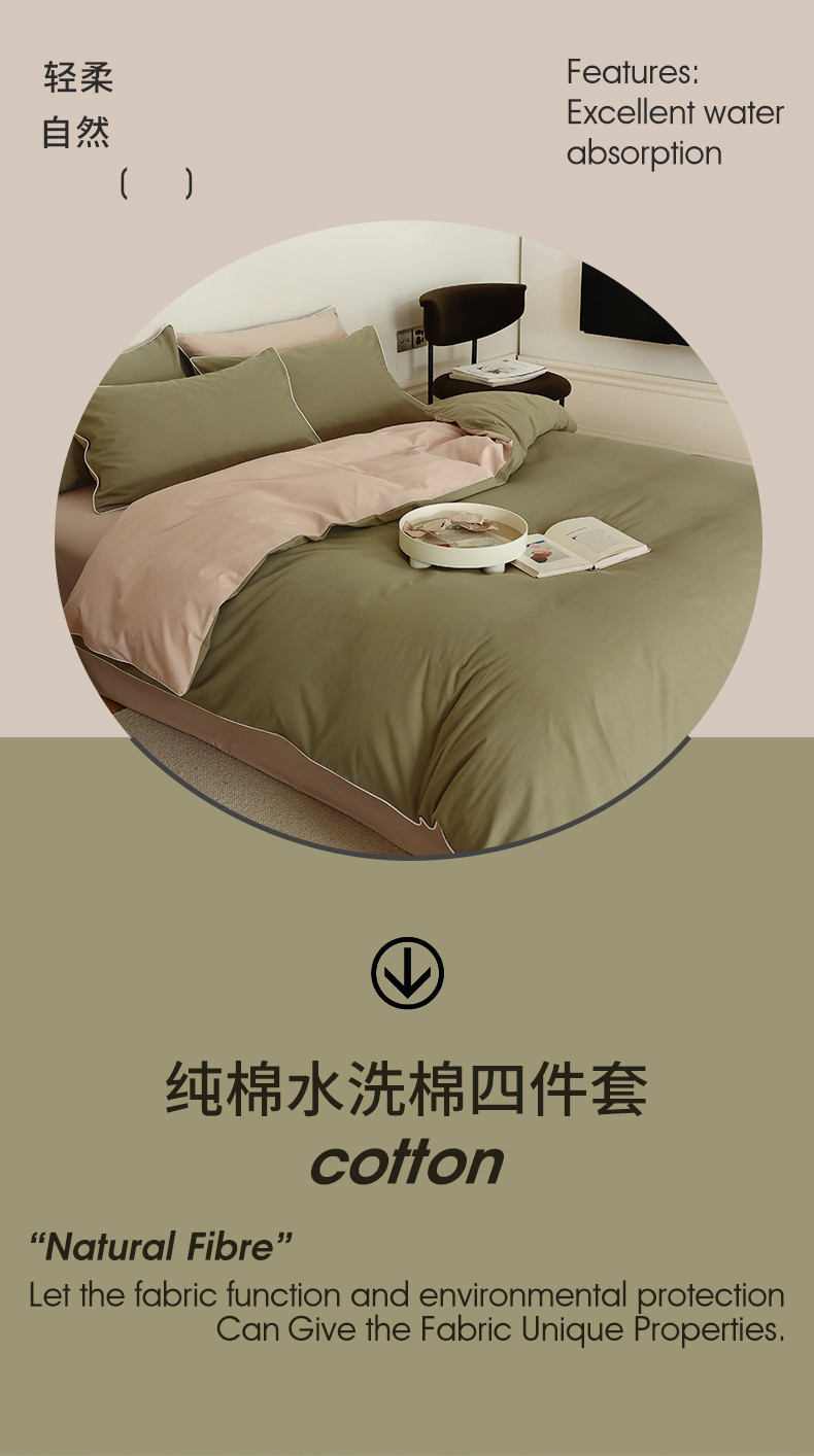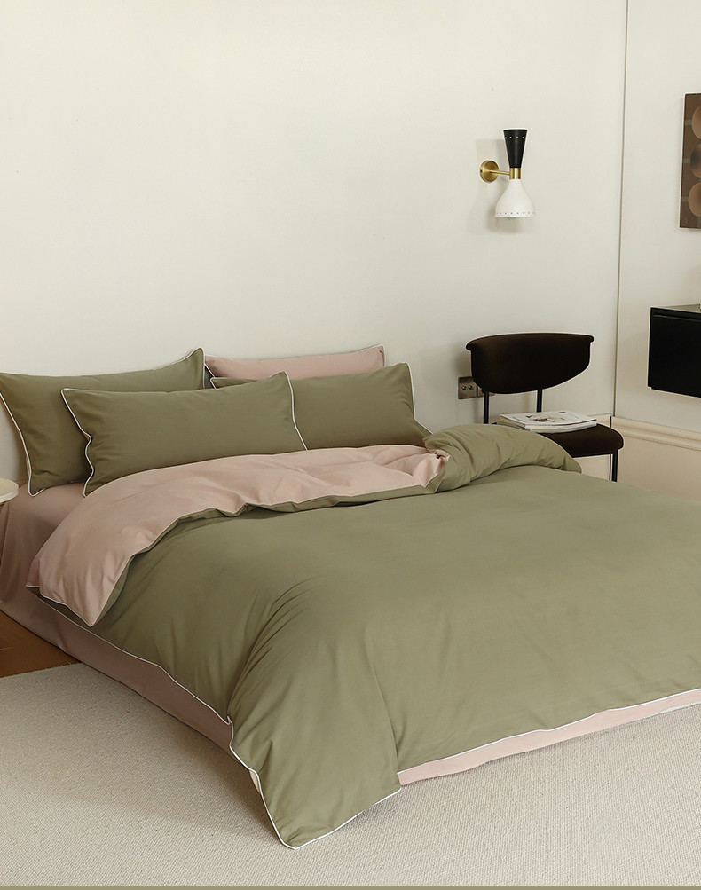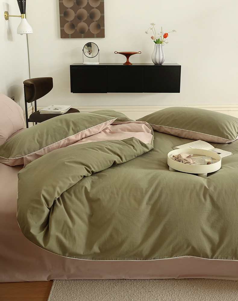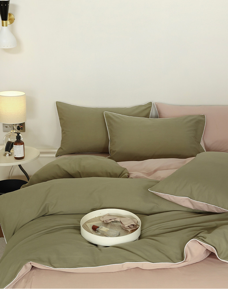 当前位置: 91家纺网 > 商品网购 > 床品套件 > 四件套 > 全棉普通四件套 > 万盛家纺 2025新款全棉水洗棉拼色四件套 抹茶绿拼淡咖