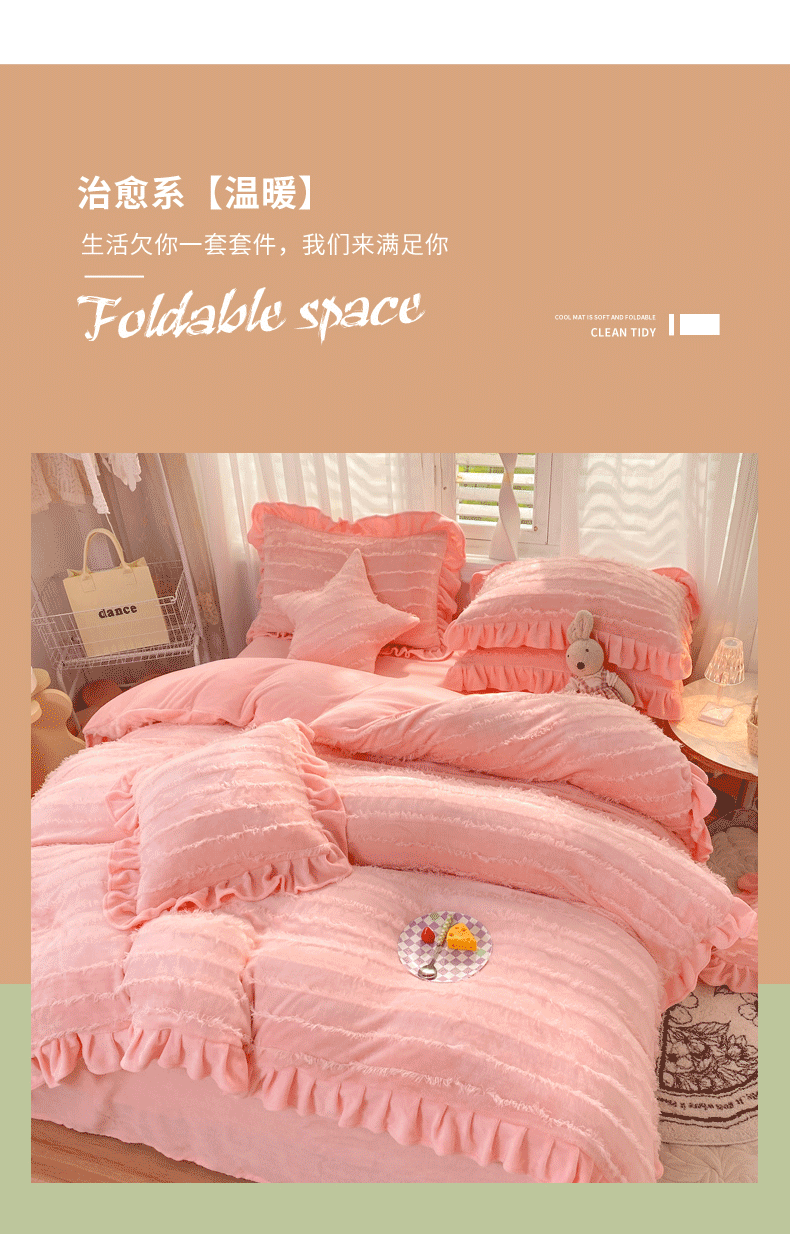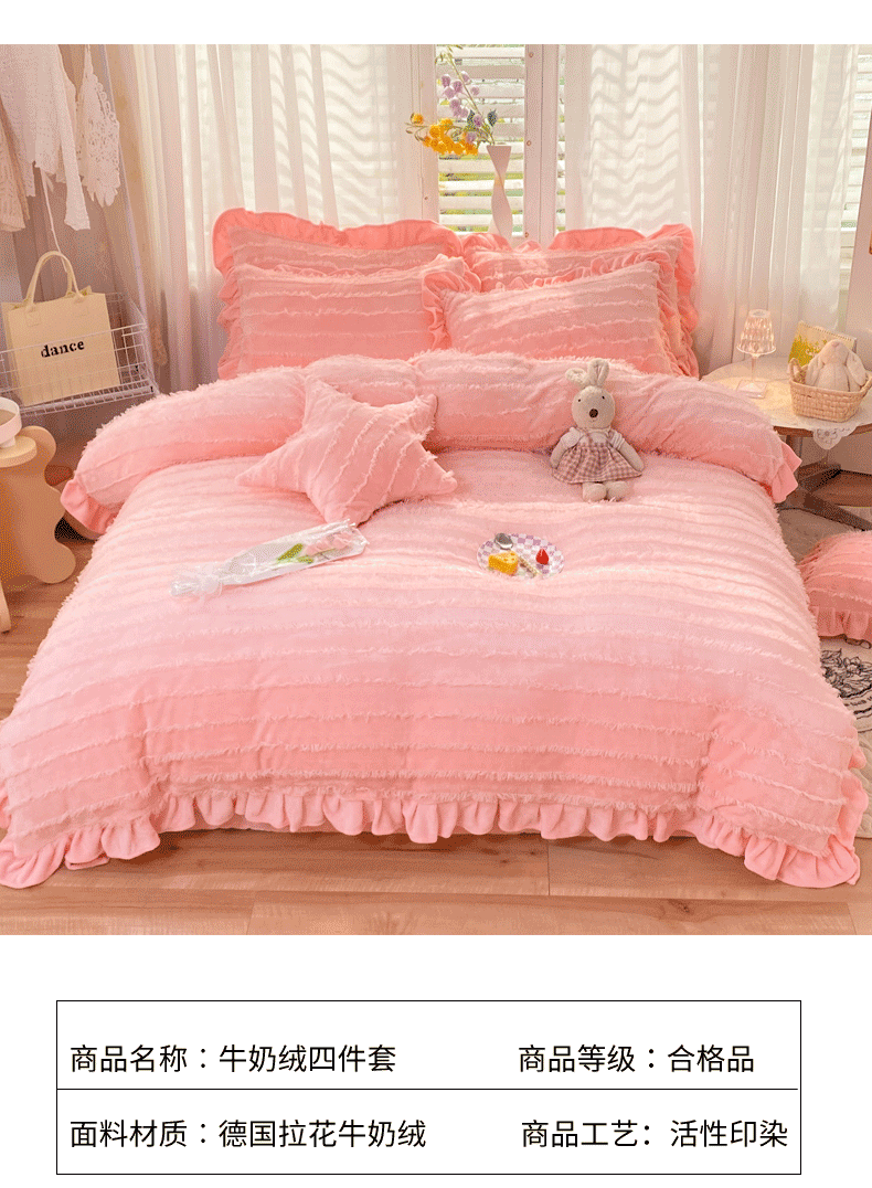 商品名称:绒世界 2024新款高端牛奶绒提花四件套 蜜桃粉