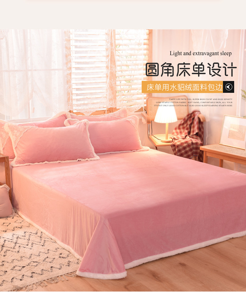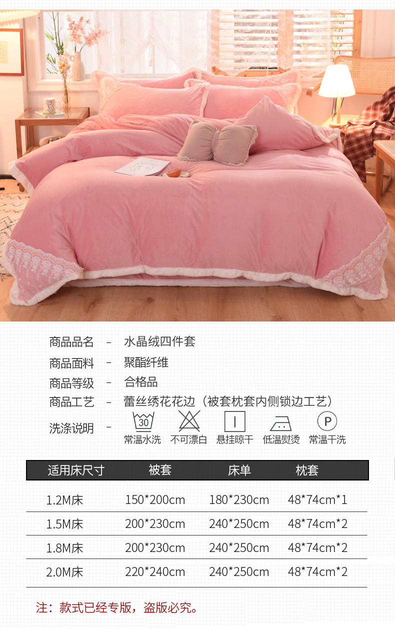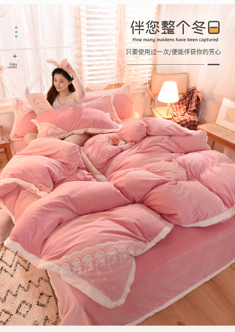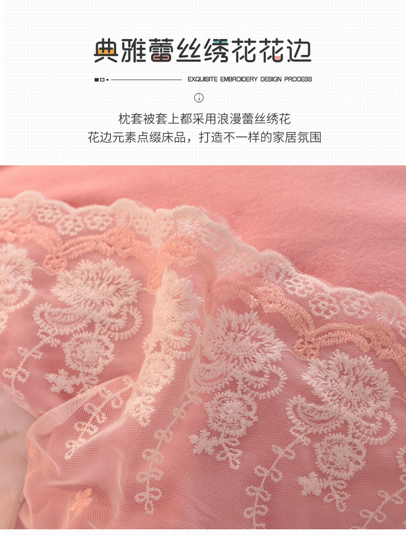 商品名称:欧冠 2023新款韩版公主牛奶绒四件套 深粉