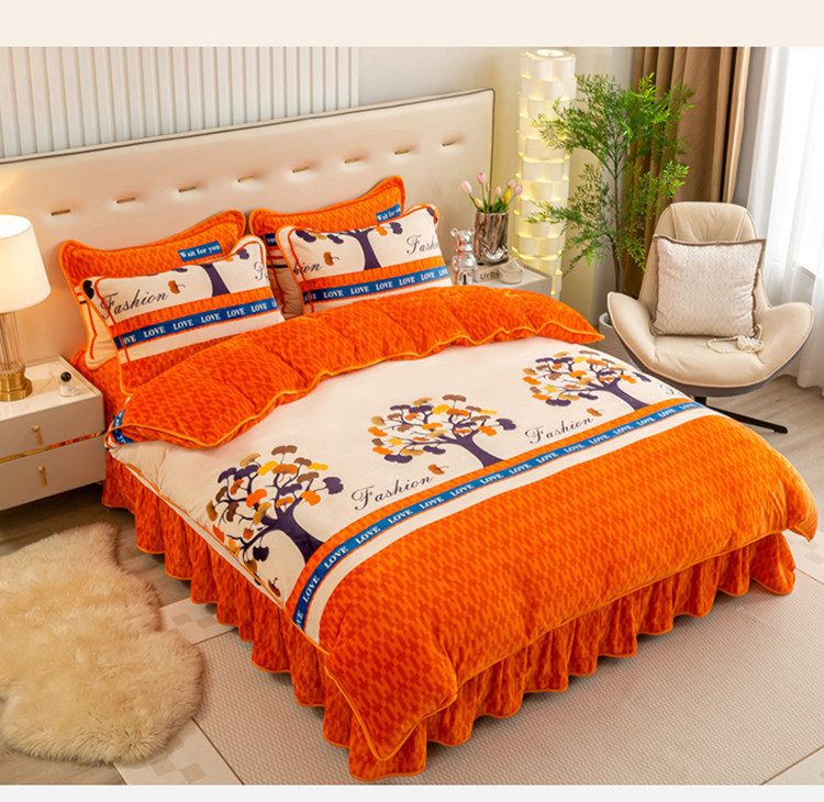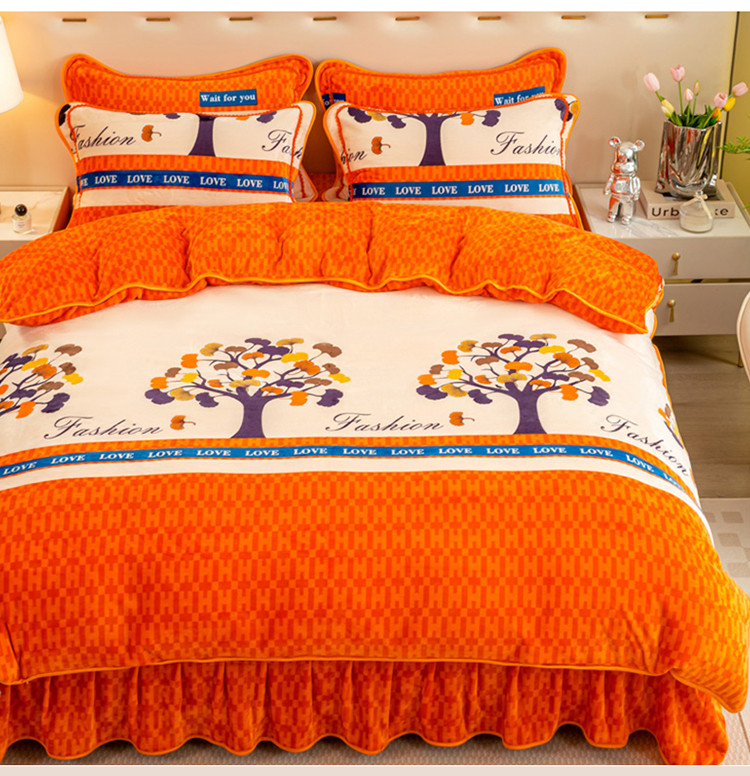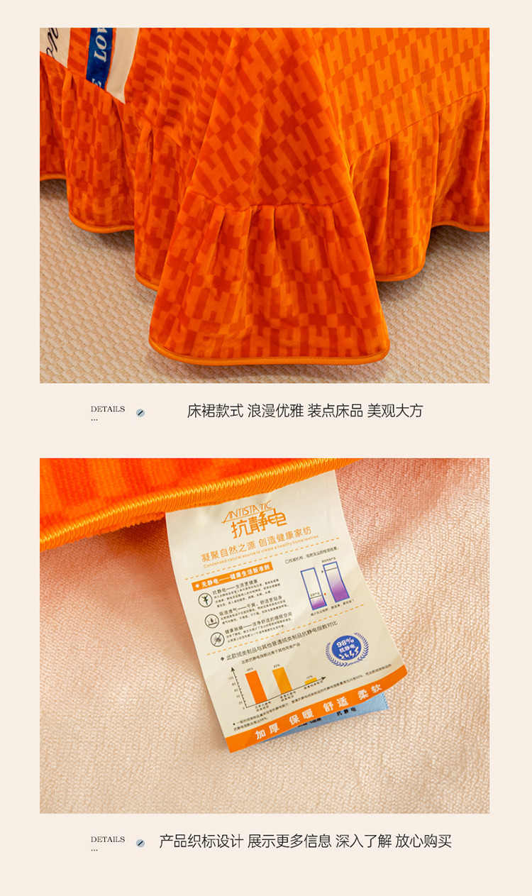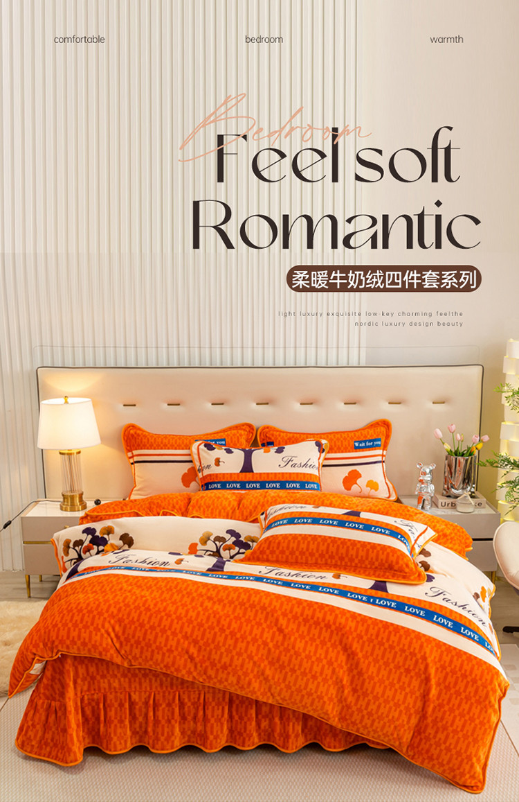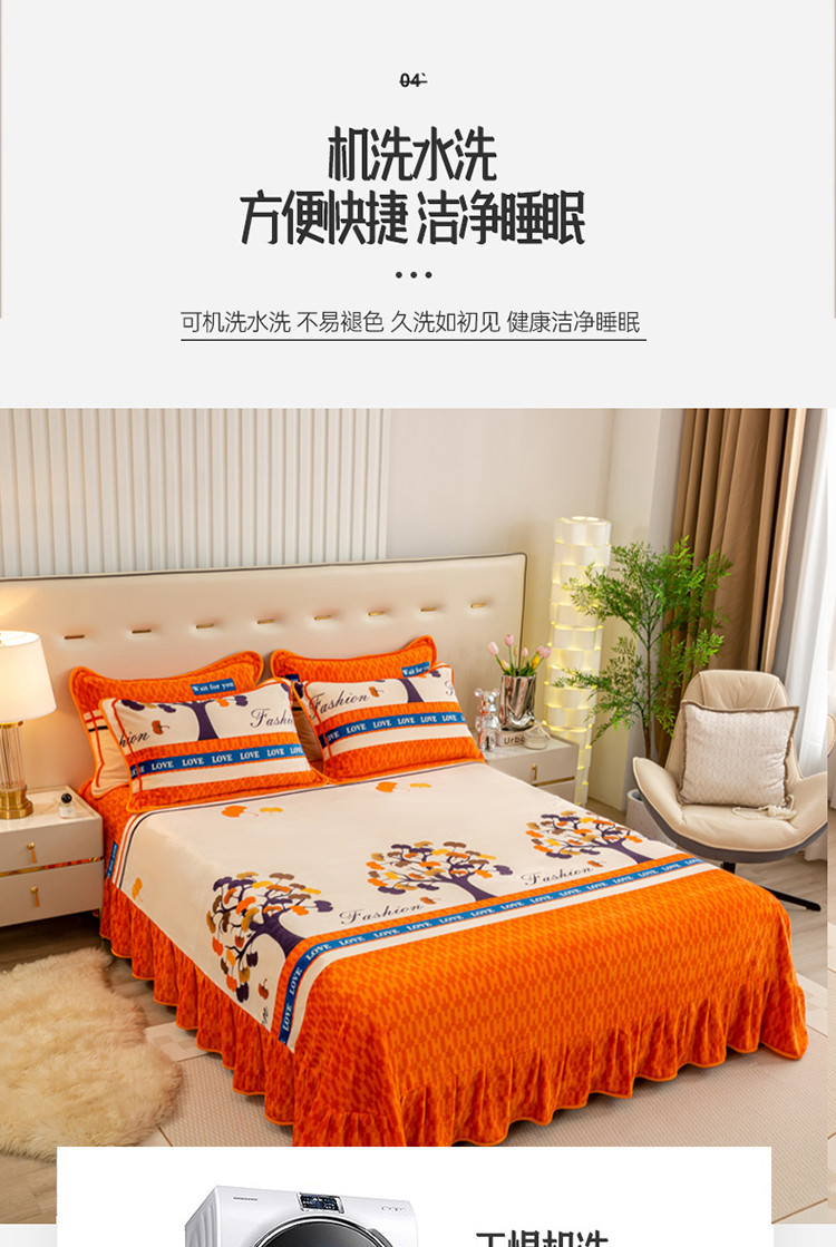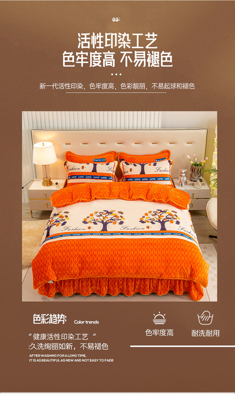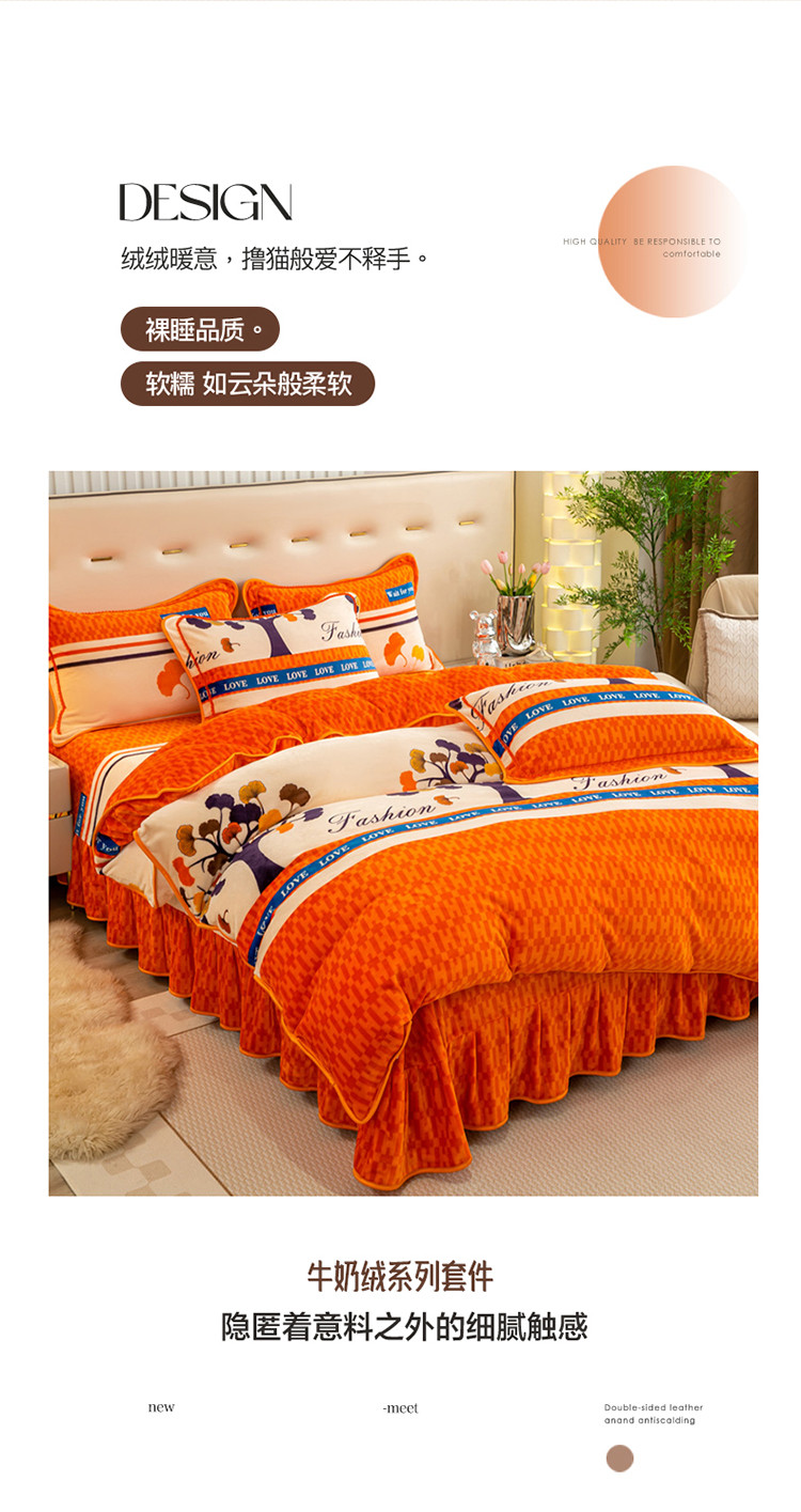(总)博兰蒂 2025秋冬新款高克重纯色牛奶绒床裙款四件套,豆沙,粉玉,红色,灰色,橘色,咖色,蓝色,苹果绿,浅绿,紫色,墨紫
