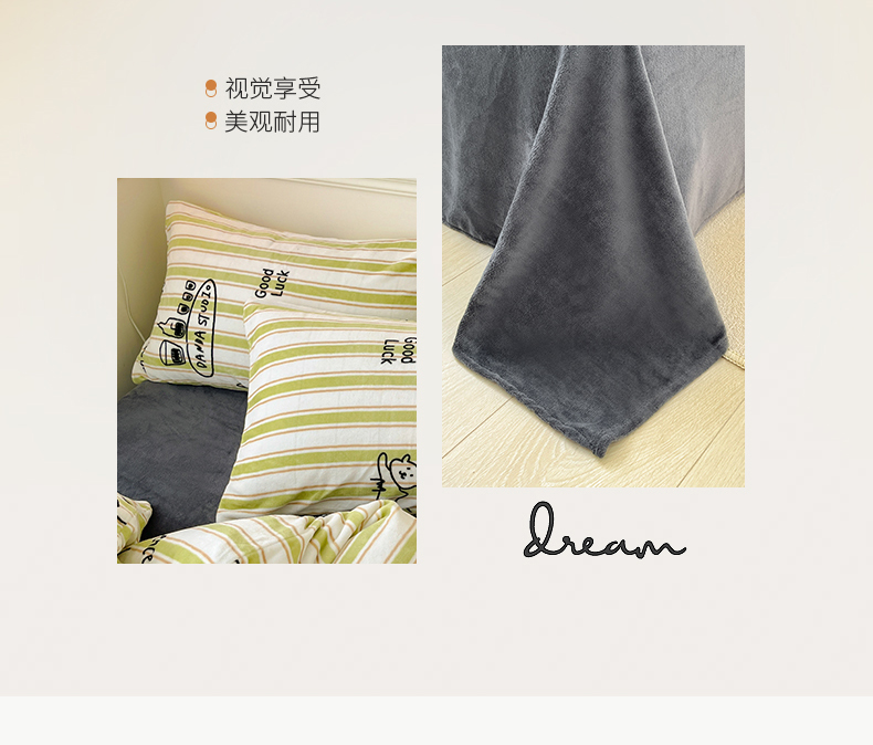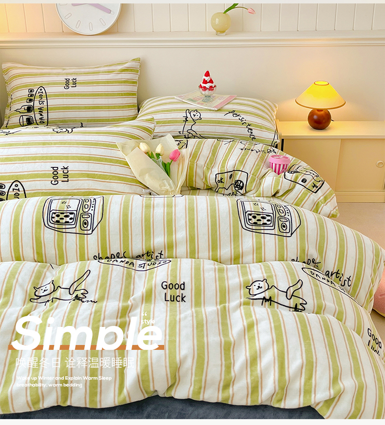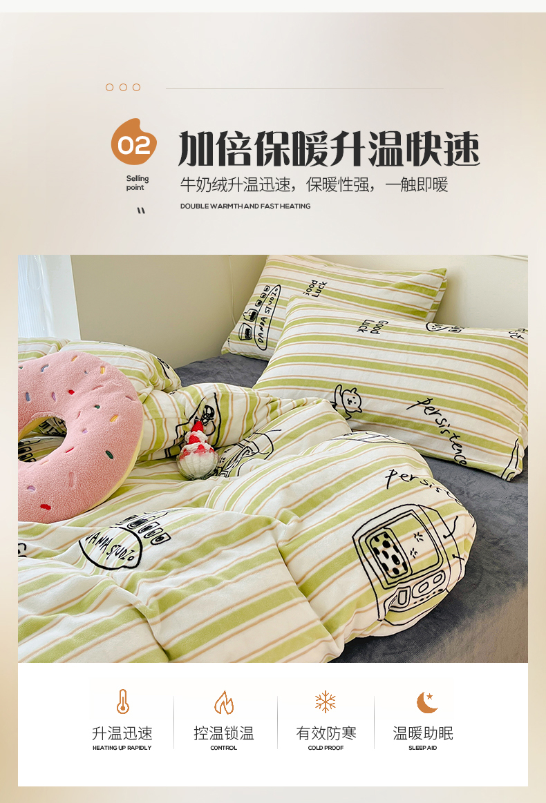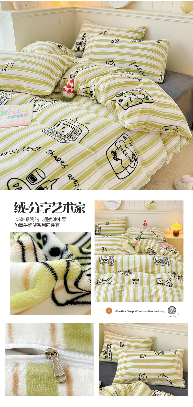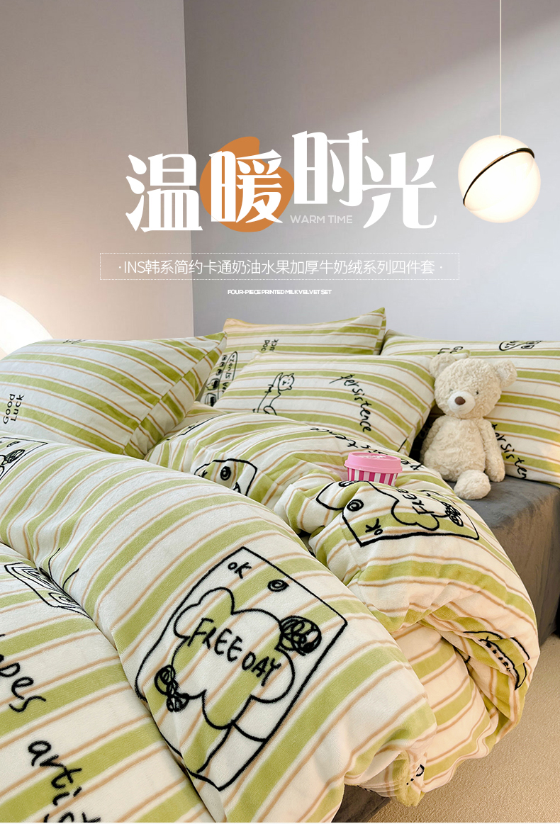 桃子家居 2023新款ins韩系简约卡通奶油小清新加厚牛奶绒系列四件套 绒-分享艺术家