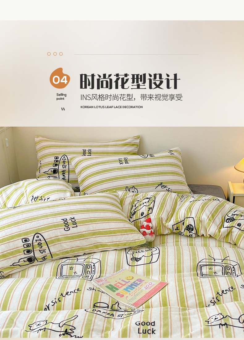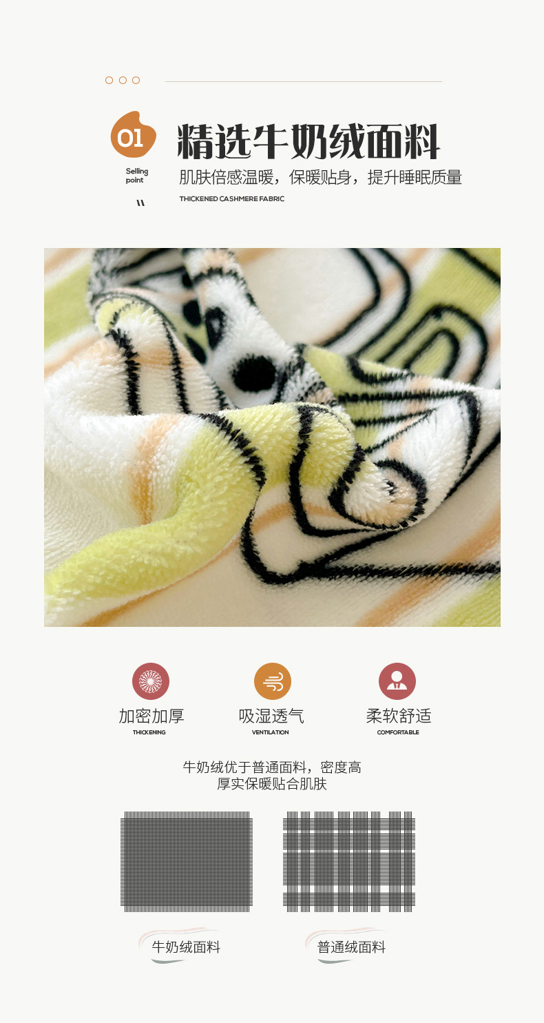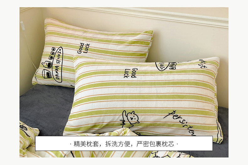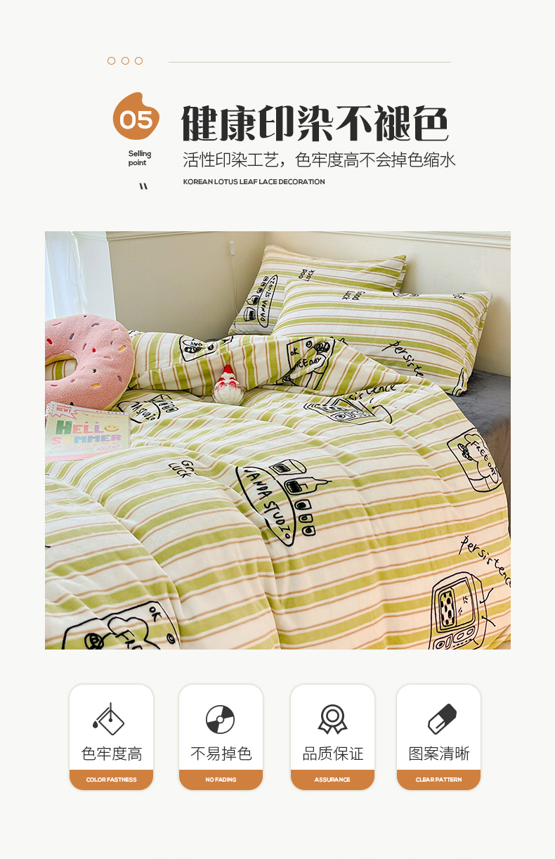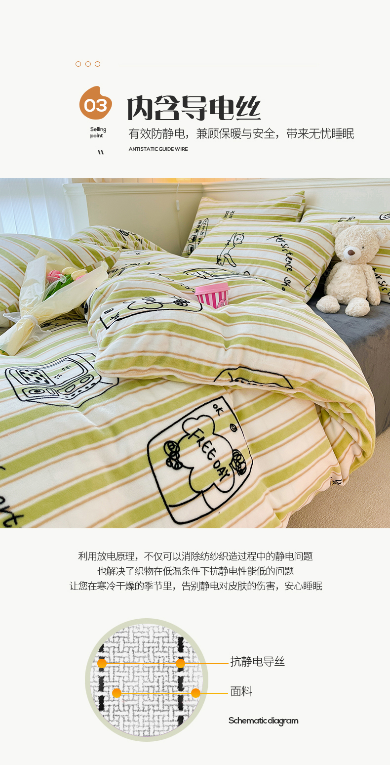 桃子家居 2023新款ins韩系简约卡通奶油小清新加厚牛奶绒系列四件套 绒-分享艺术家