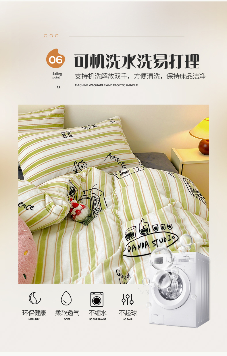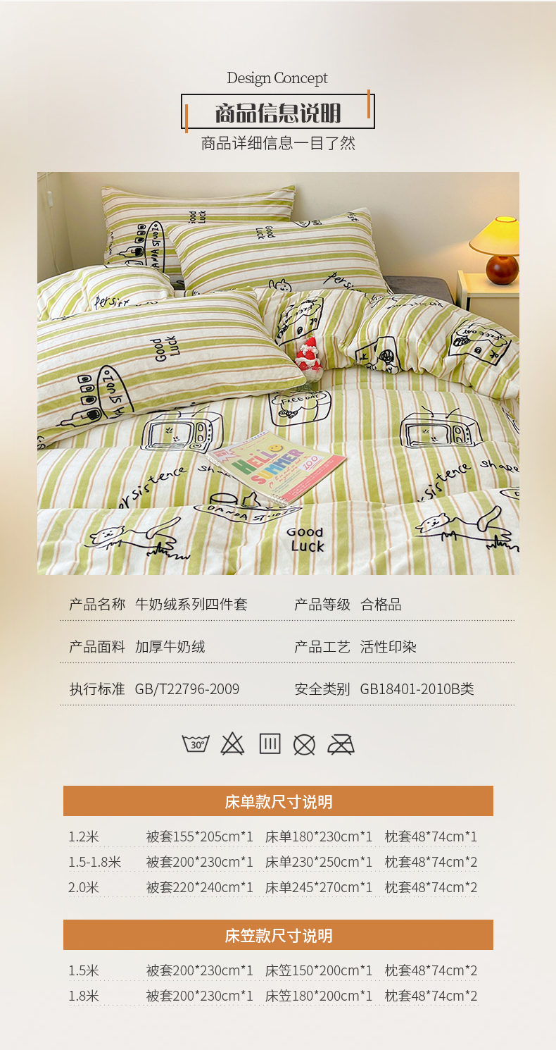 商品名称:桃子家居 2023新款ins韩系简约卡通奶油小清新加厚牛奶绒系列四件套 绒-分享艺术家