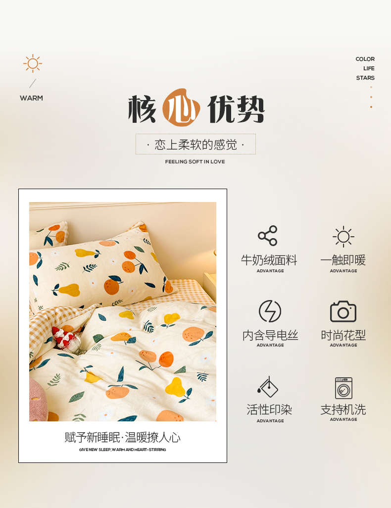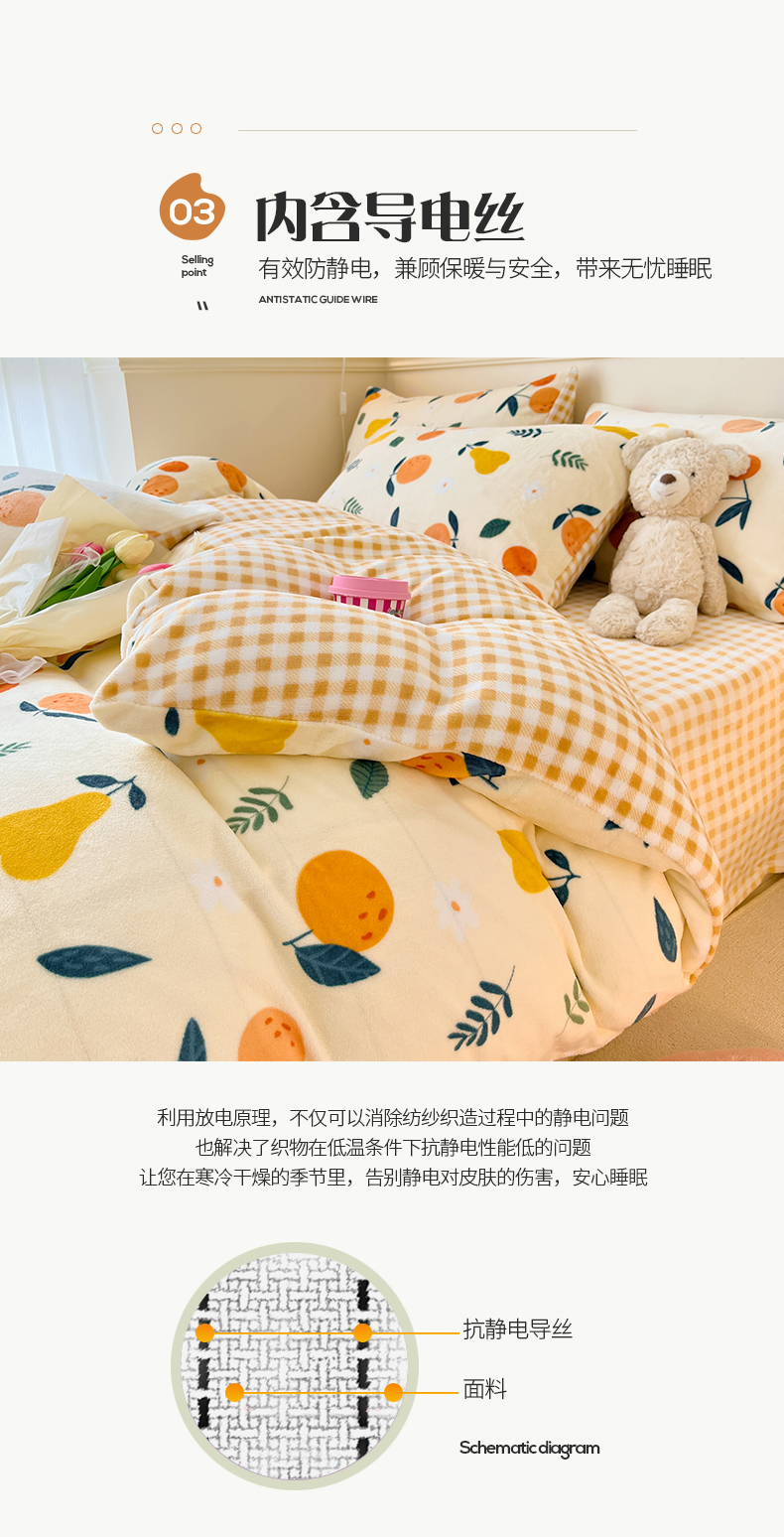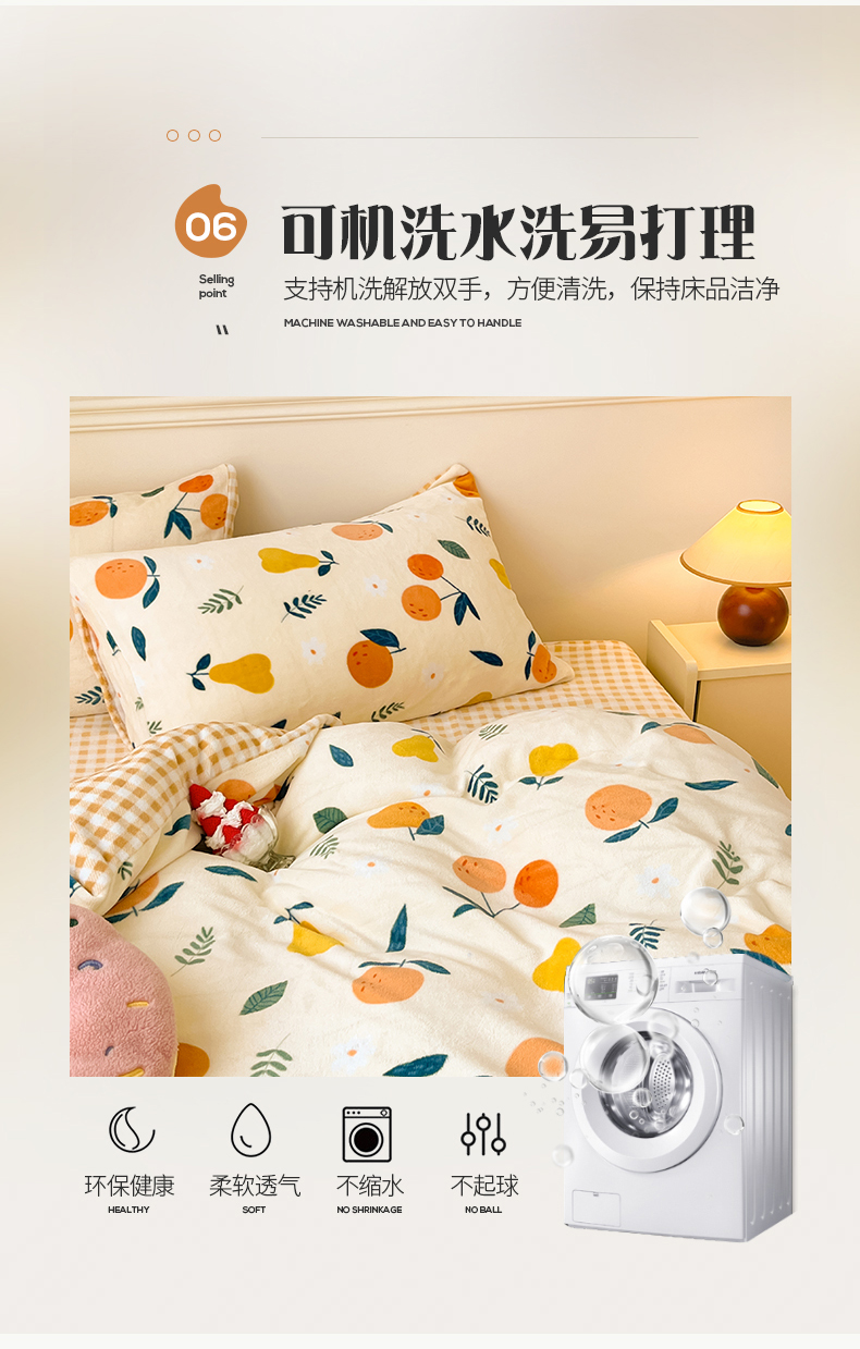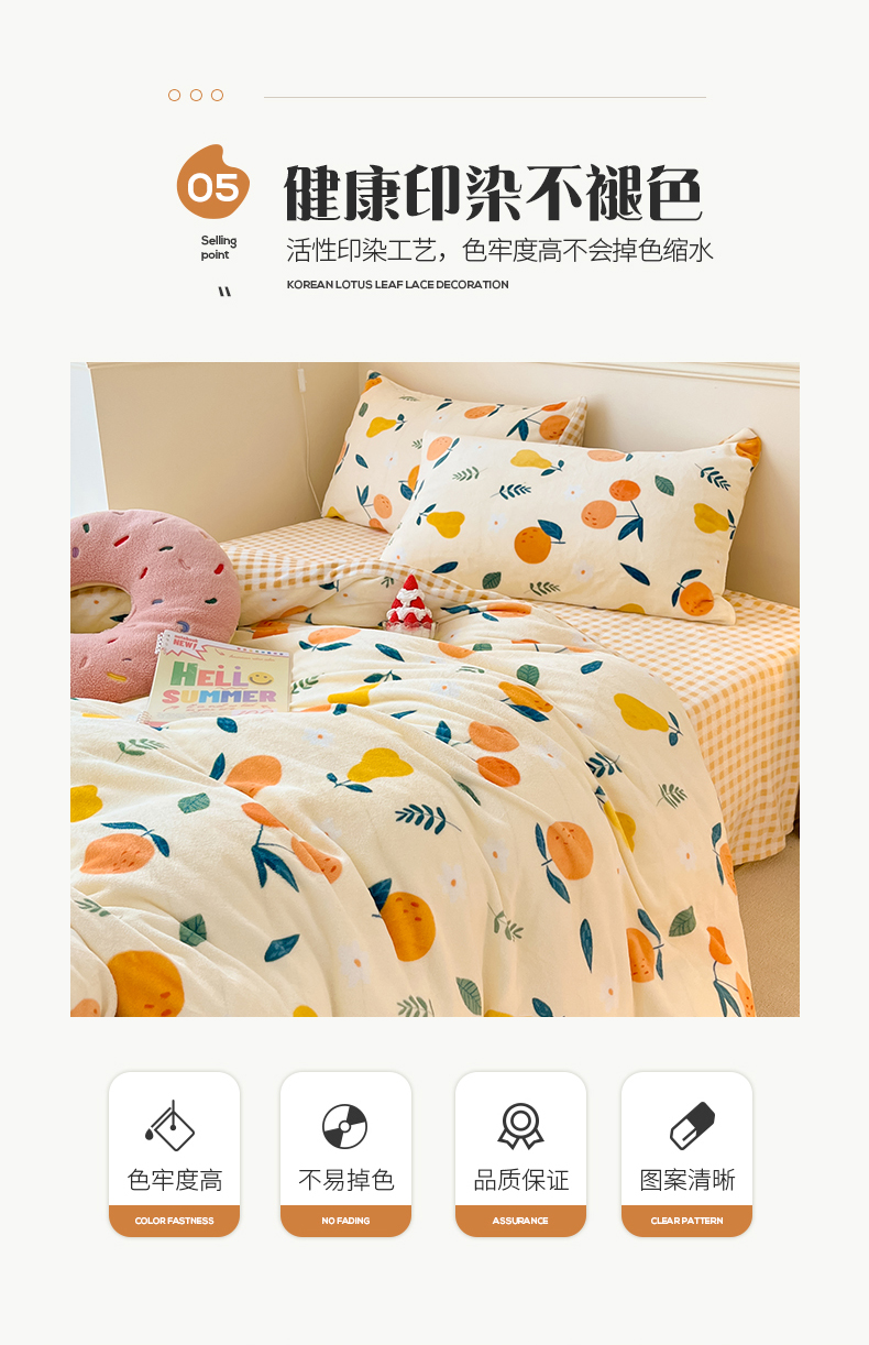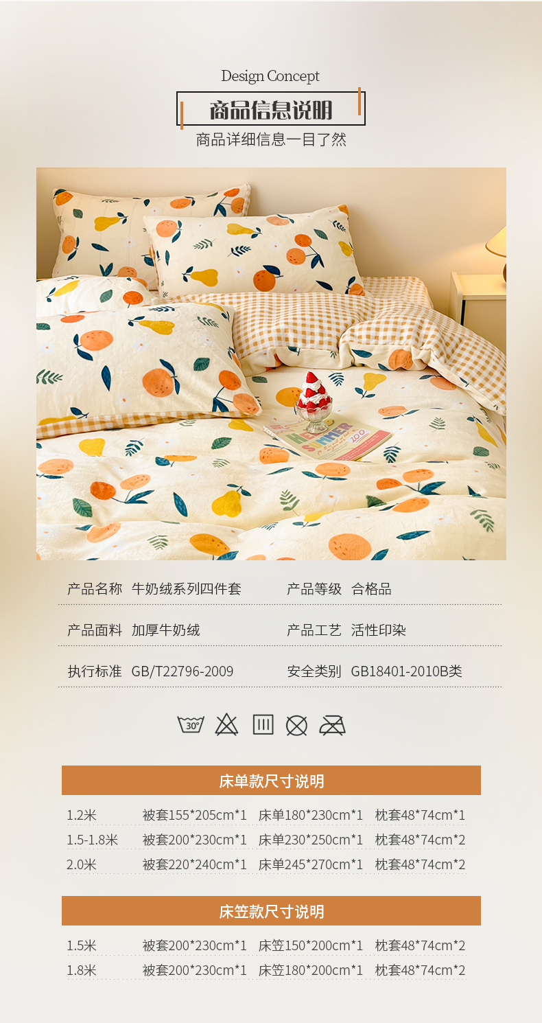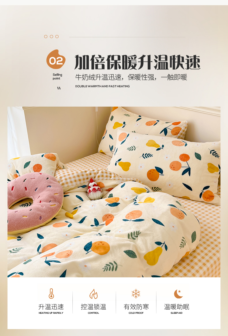 商品名称:桃子家居 2023新款ins韩系简约卡通奶油小清新加厚牛奶绒系列四件套 绒-硕果