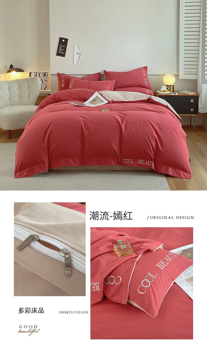 商品名称:2023新款全棉磨毛绣花四件套 潮流-嫣红