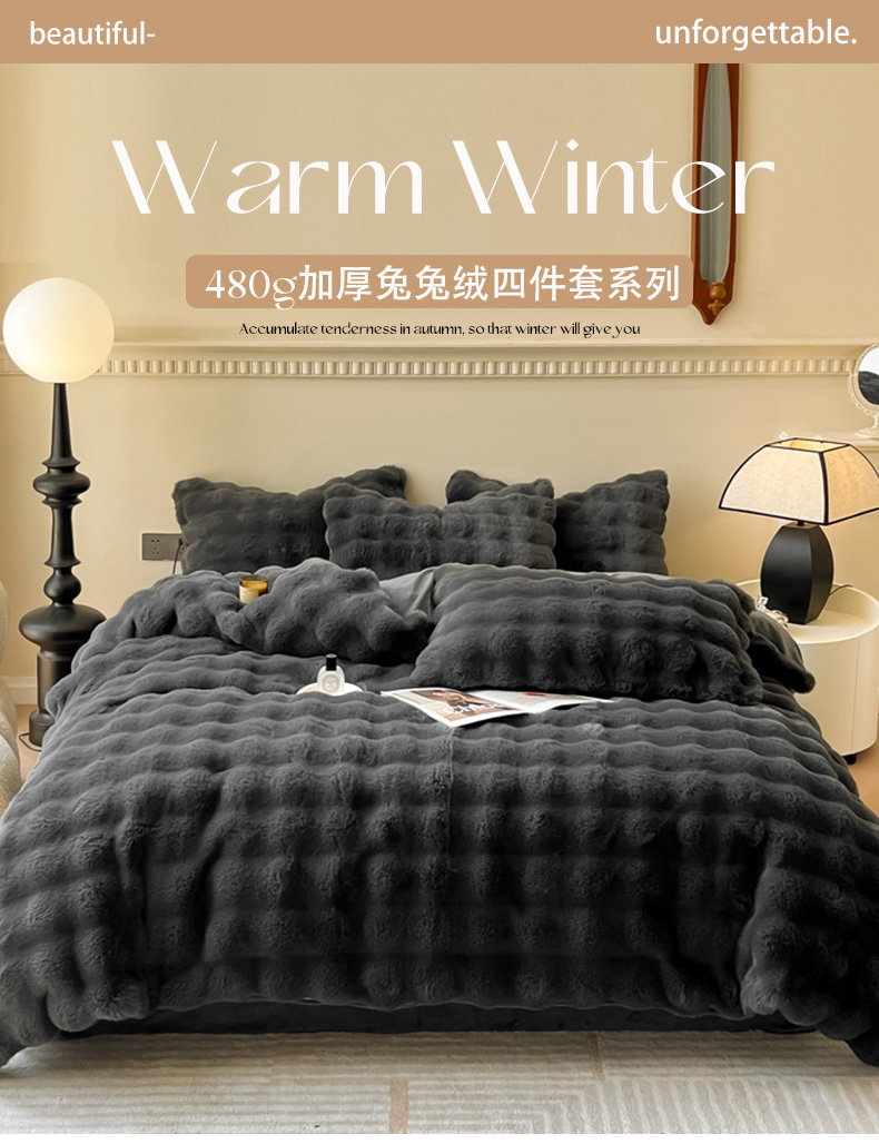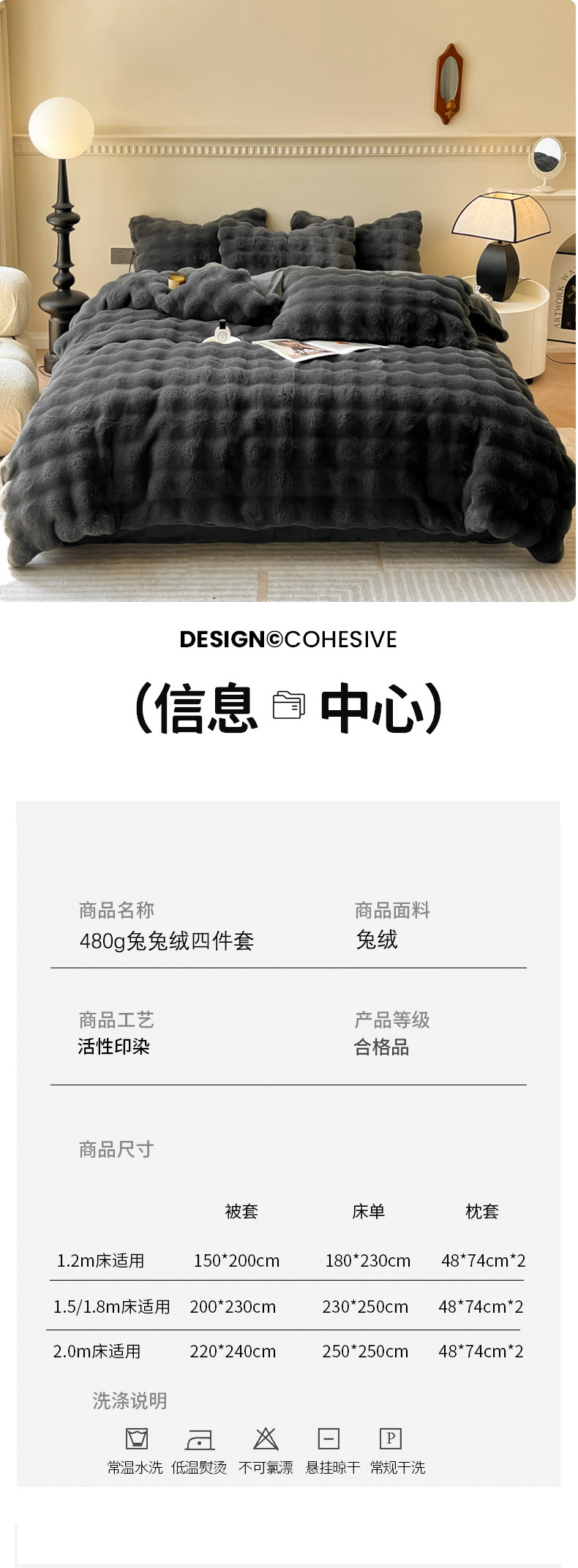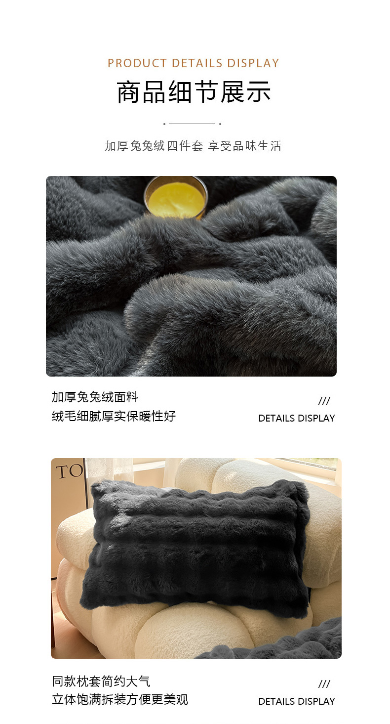 当前位置: 91家纺网 > 商品网购 > 床品套件 > 四件套 > 兔毛绒四件套 > 慕尚 2025新款480g加厚兔毛绒兔兔绒四件套 薇妮黑灰
