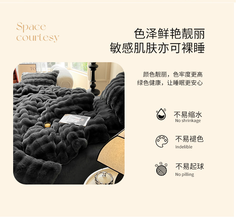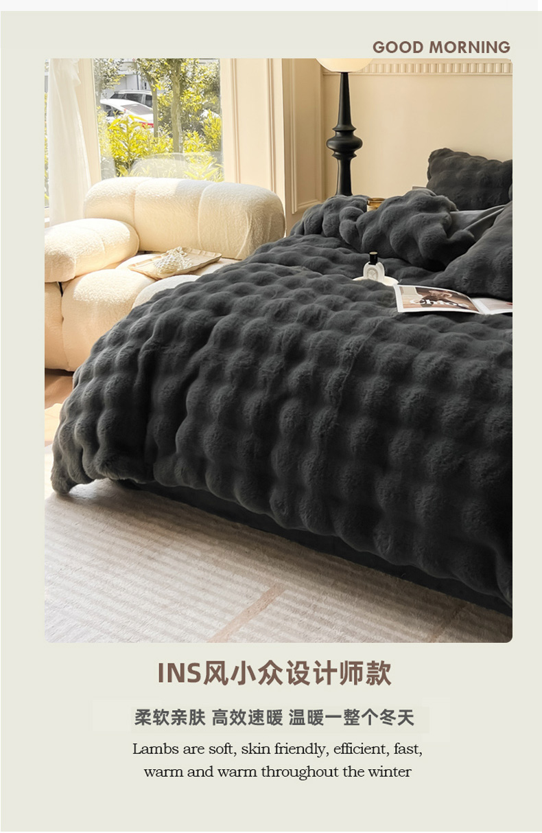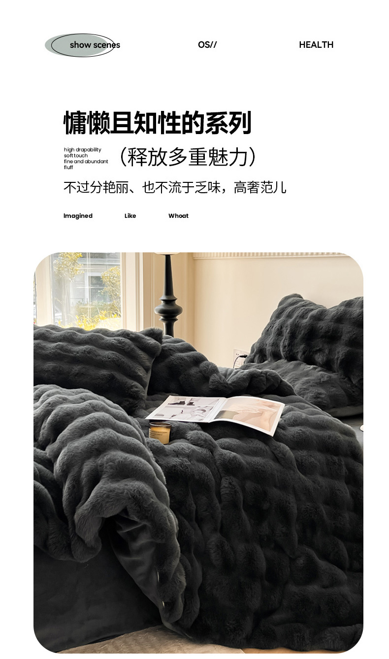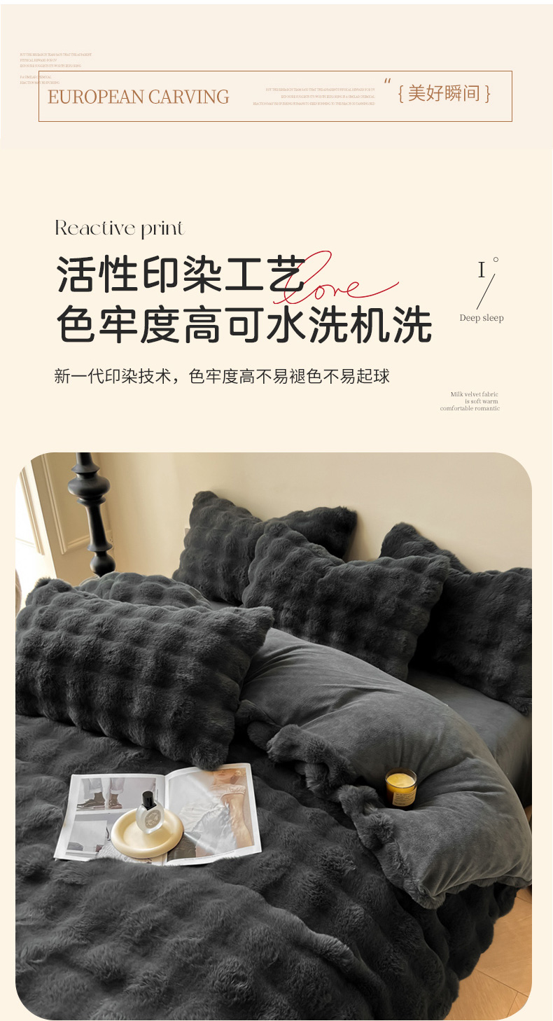 当前位置: 91家纺网 > 商品网购 > 床品套件 > 四件套 > 兔毛绒四件套 > 慕尚 2025新款480g加厚兔毛绒兔兔绒四件套 薇妮黑灰