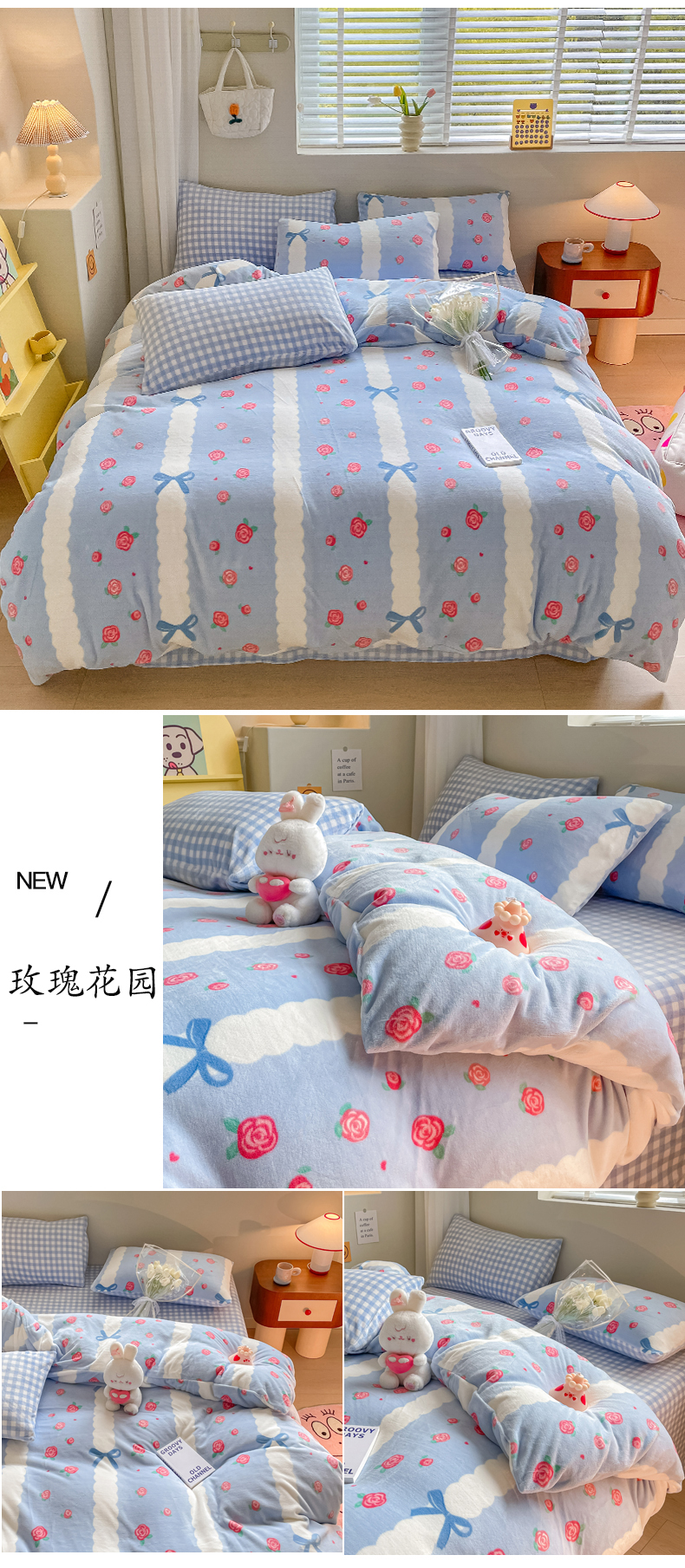 当前位置: 91家纺网 > 商品网购 > 床品套件 > 四件套 > 牛奶绒四件套 > 三朵 2023新款牛奶绒小清新系列四件套 玫瑰花园