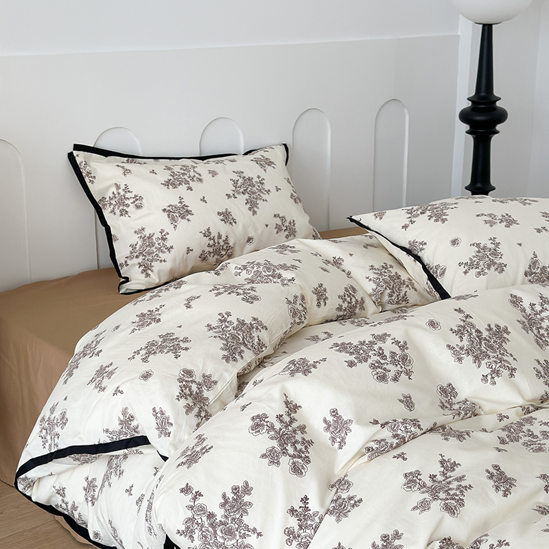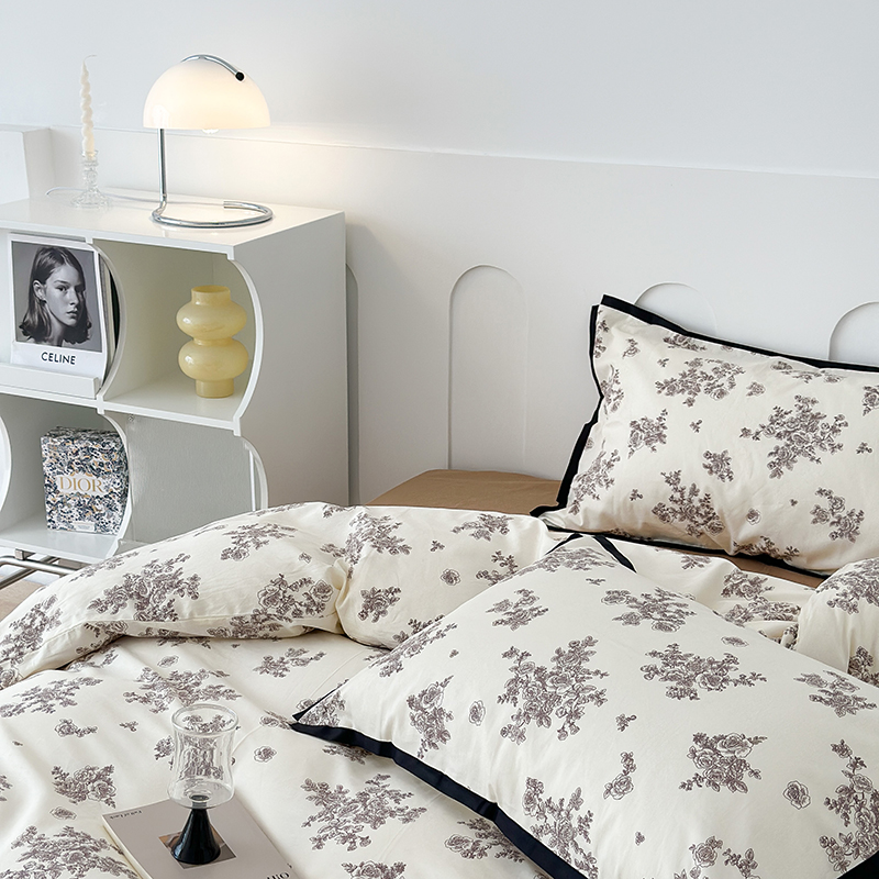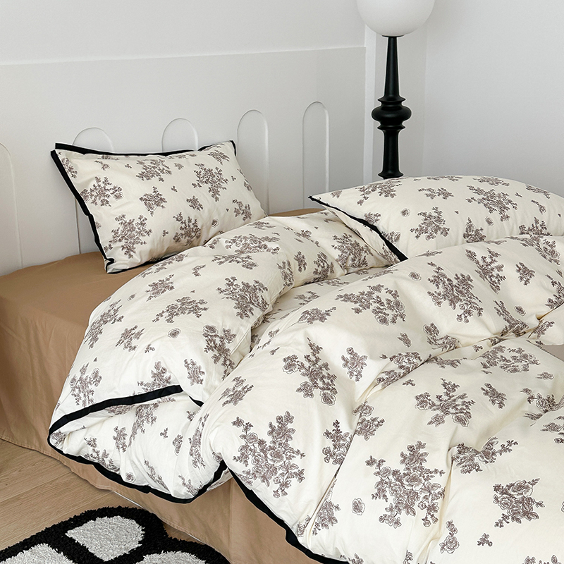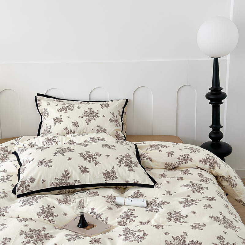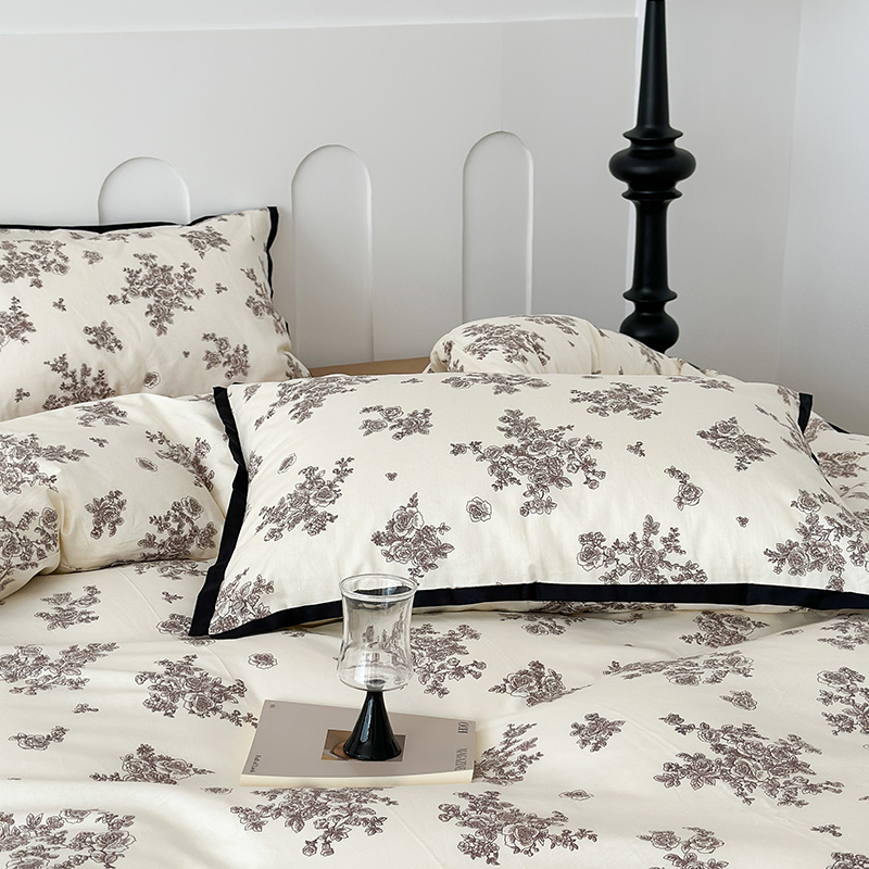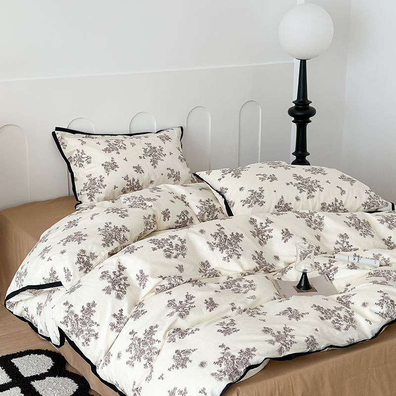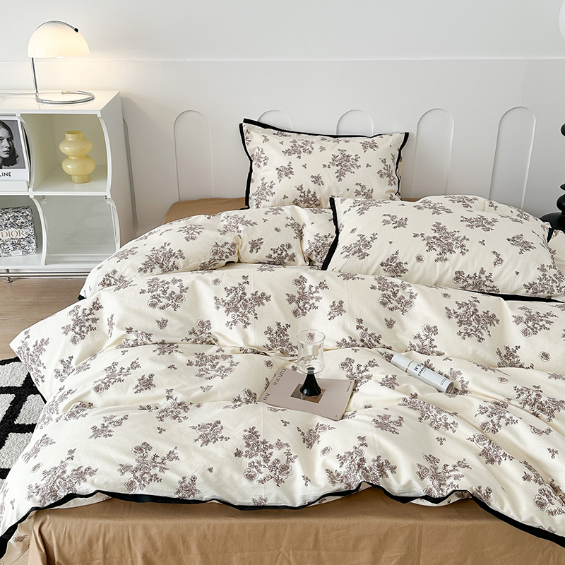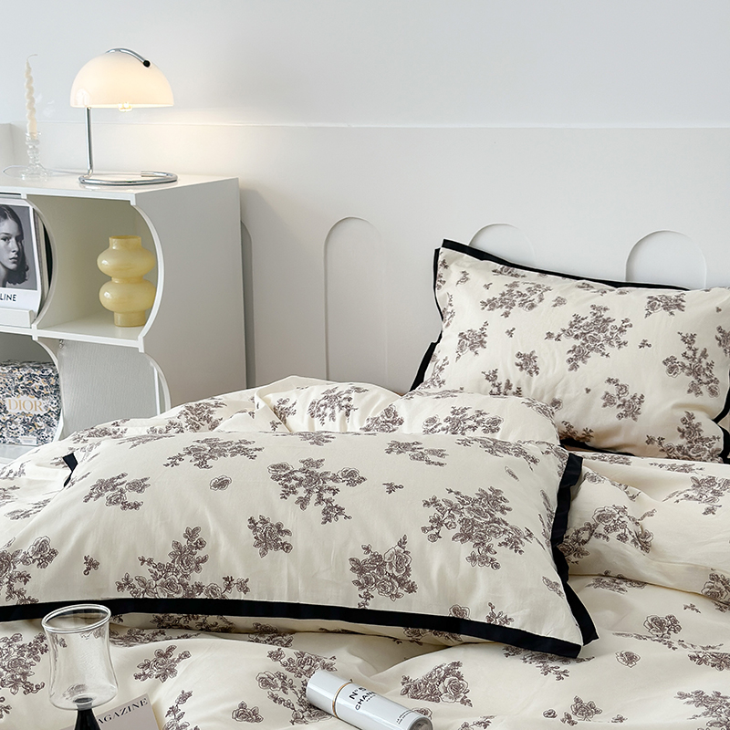 商品名称:昔可家纺 2023新款全棉复古风黑花边四件套(风格二) 巴黎画染