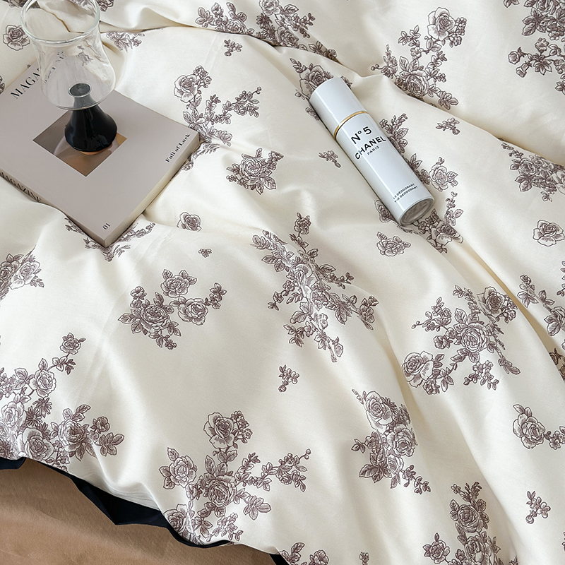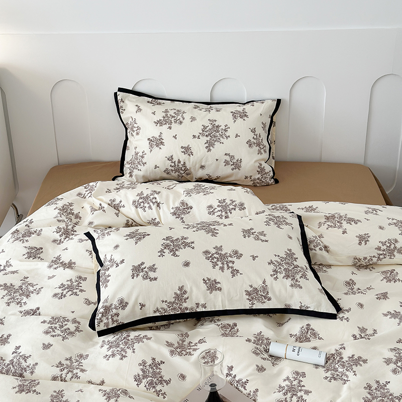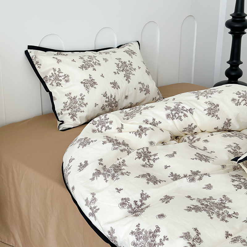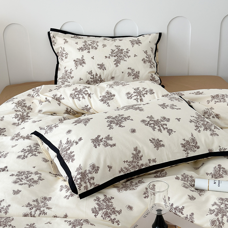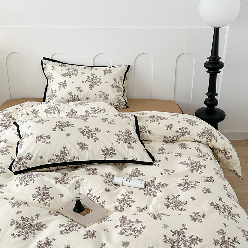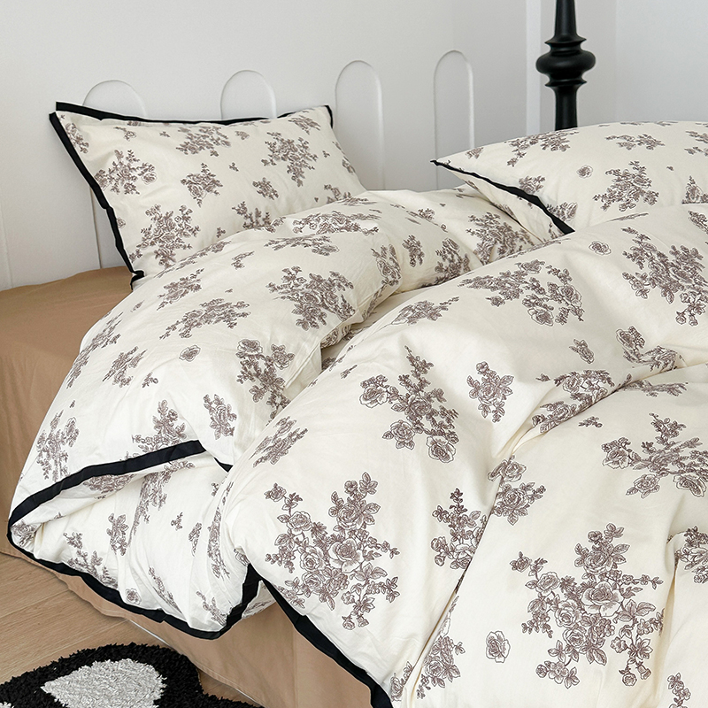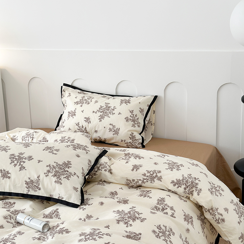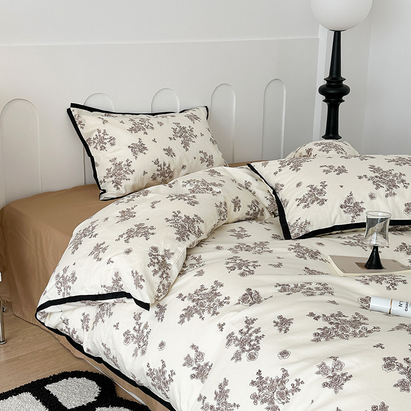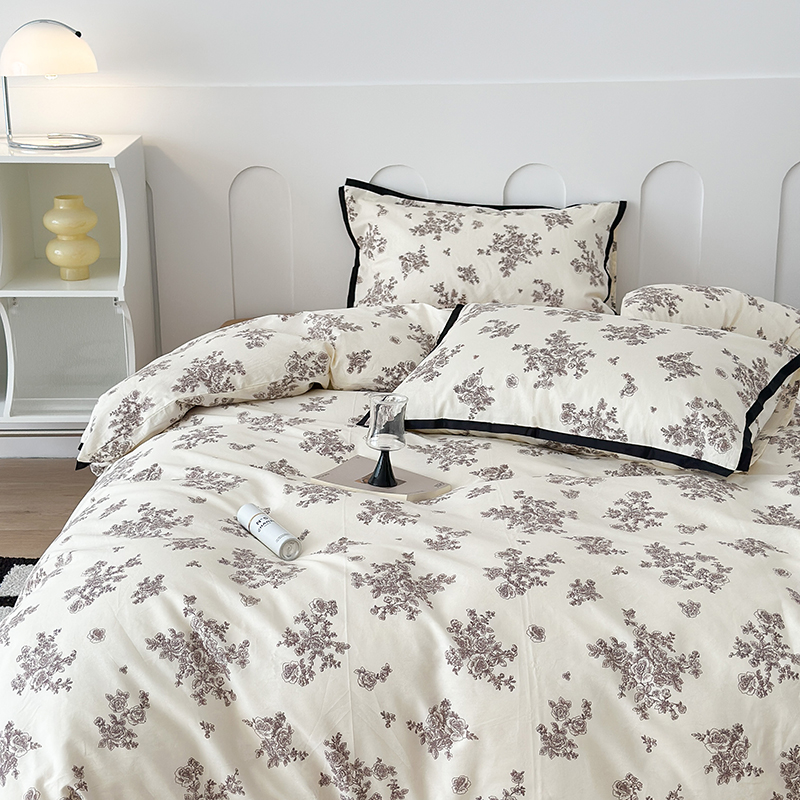 商品名称:昔可家纺 2023新款全棉复古风黑花边四件套(风格二) 巴黎画染