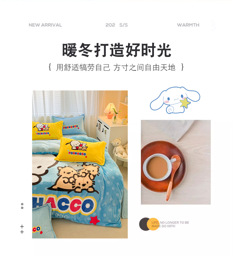 当前位置: 91家纺网 > 商品网购 > 床品套件 > 四件套 > 牛奶绒四件套 > 金爱家 2023新款kt猫大阪加厚牛奶绒系列四件套 欢乐玉桂狗