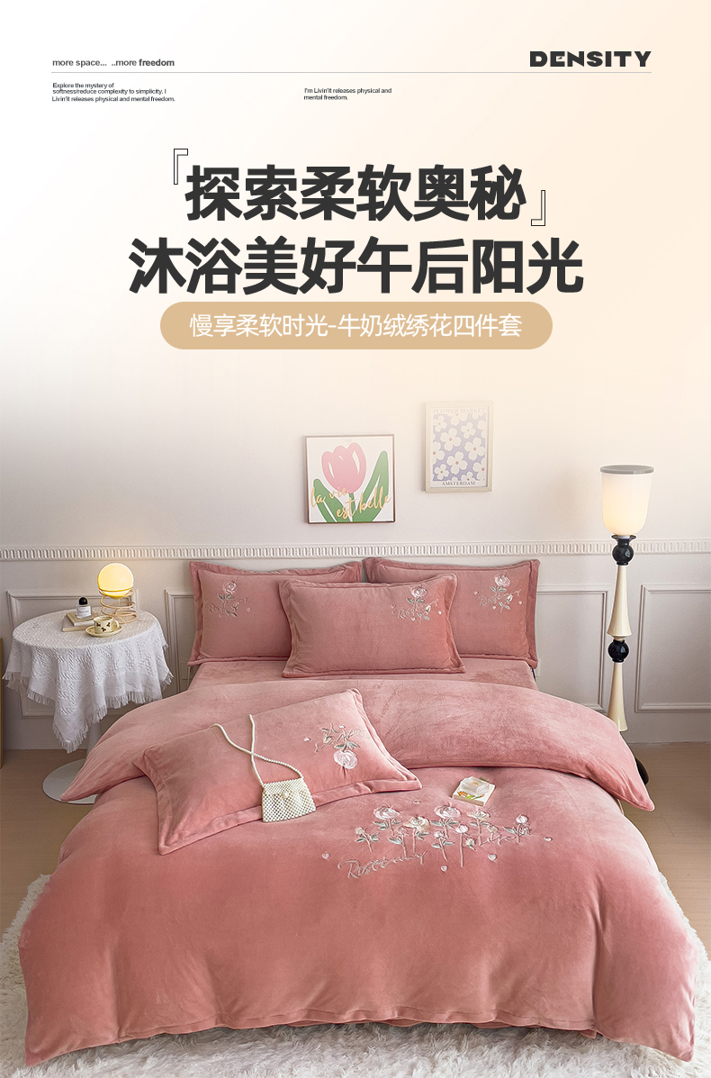 (总)云锦2023秋冬新品全棉磨毛绣花四件套缦芯,缦芯粉,缦芯灰,缦芯橘,缦芯蓝,缦芯紫