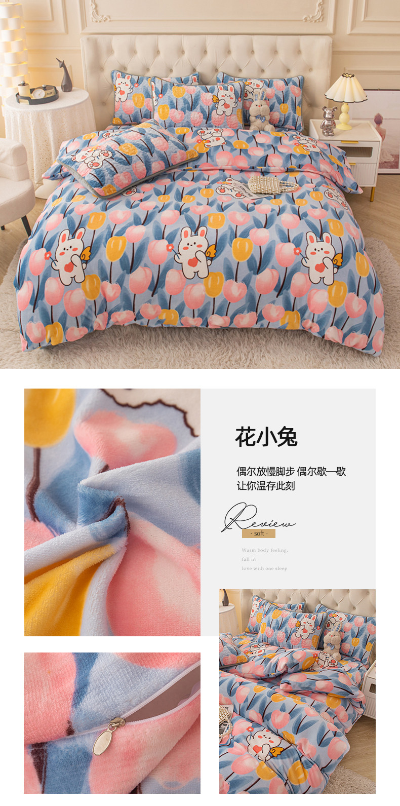 梓依家纺 2023新款牛奶绒床盖款四件套 花小兔